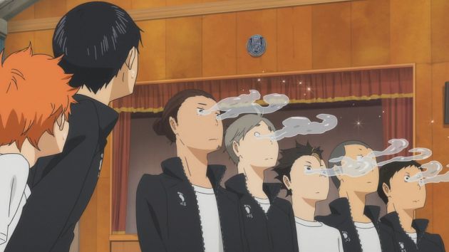 Après, niveau psychologie des personnages, c'est extrêmement classique mais justement voilà, comme on ne verse pas dans le « too much » ça passe très bien : chacun a ses motivations, son histoire mais on ne va pas s'attarder pendant cinq épisodes sur untel qui joue sa vie sur un match. Certes il y a de l'émotion, de la passion mais cela reste du volley lycéen et le fait que cela soit assumé (en dépit du fait qu'il s'agisse d'un anime) finit d'arrondir les angles et fait d'Haikyuu !! une série parfaitement huilée où rien ne fait tâche.