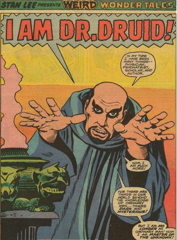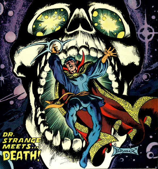 « Par les hordes hurlantes d'Hoggoth et les mille lunes de Munoporr ! » Et dans un déluge psychédélique d'effets lumineux, le Docteur Strange se débarrasse d'une meute de goules gargantuesques. Puis il rentre dans son sanctuaire de Greenwich Village et le fidèle Wong lui prépare un bon thé vert qui draine bien partout où il le faut, parce qu'il faut garder la forme, n'est-ce pas.