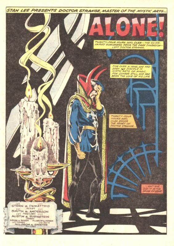 L'important, c'est que du coup, les pouvoirs du Doc redeviennent de simples superpouvoirs, avec juste un vernis magique. On en revient d'une certaine manière à la période qui avait précédé l'arrivée d'Englehart, à ceci près qu'on ne cherche plus à coller un masque à Strange. Il faudra attendre Roger Stern pour replonger dans les grands duels d'entités et les plongées psychédéliques, mais pour ce faire, il restera strictement dans les concepts et les principes déjà établis avant lui.