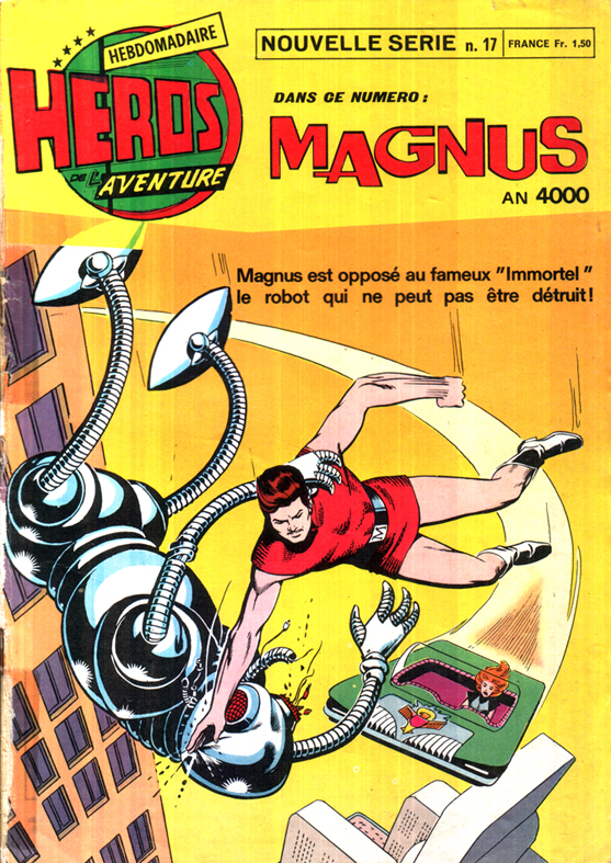 Magnus Robot Fighter a fait une carrière tout à fait méritante aux États-Unis dans les années 1960. Connue dans nos contrées sous l’appellation Magnus An 4000, la série a été publiée par les Éditions des Remparts (d’abord dans Héros de l’Aventure, dont le sommaire tournant accueille également Star Trek ou Turok, puis dans Magnus An 4000) qui proposent l’intégralité du sommaire américain, choix éditorial à quoi on doit la découverte de l’histoire de complément, Captain Johner and the Aliens.