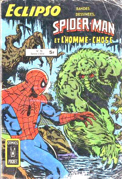 En France, c’est le bazar (et dans ma collection, il manque des numéros, ce qui n’arrange rien), la série débutant dans Frankenstein #6, en 1976. Le titre, compilant séries d’horreur et de fantasy, avait déjà accueilli les aventures de Thongor, donc sans discrimination l’éditeur, semblant avoir acquis les droits de toute la série, enquille sur les péripéties vécues par notre homme-loup préféré (il n’occupera jamais la couverture, squattée par Deathlok). Bizarrement, les deux derniers épisodes de Creatures on the Loose demeurent inédits en France, sans raison apparente, rendant la compréhension de l’ensemble problématique (c’est toute l’histoire des pockets Arédit). Alors que les deux épisodes de Marvel Premiere atterriront dans le sommaire d’Eclipso #70 (en 1980, soit quatre ans après les épisodes de Frankenstein), numéro bien connu des amateurs de John Byrne puisqu’il accueille, en première place et en couverture, le Marvel Team-Up où Spider-Man s’associe à l’Homme-Chose.