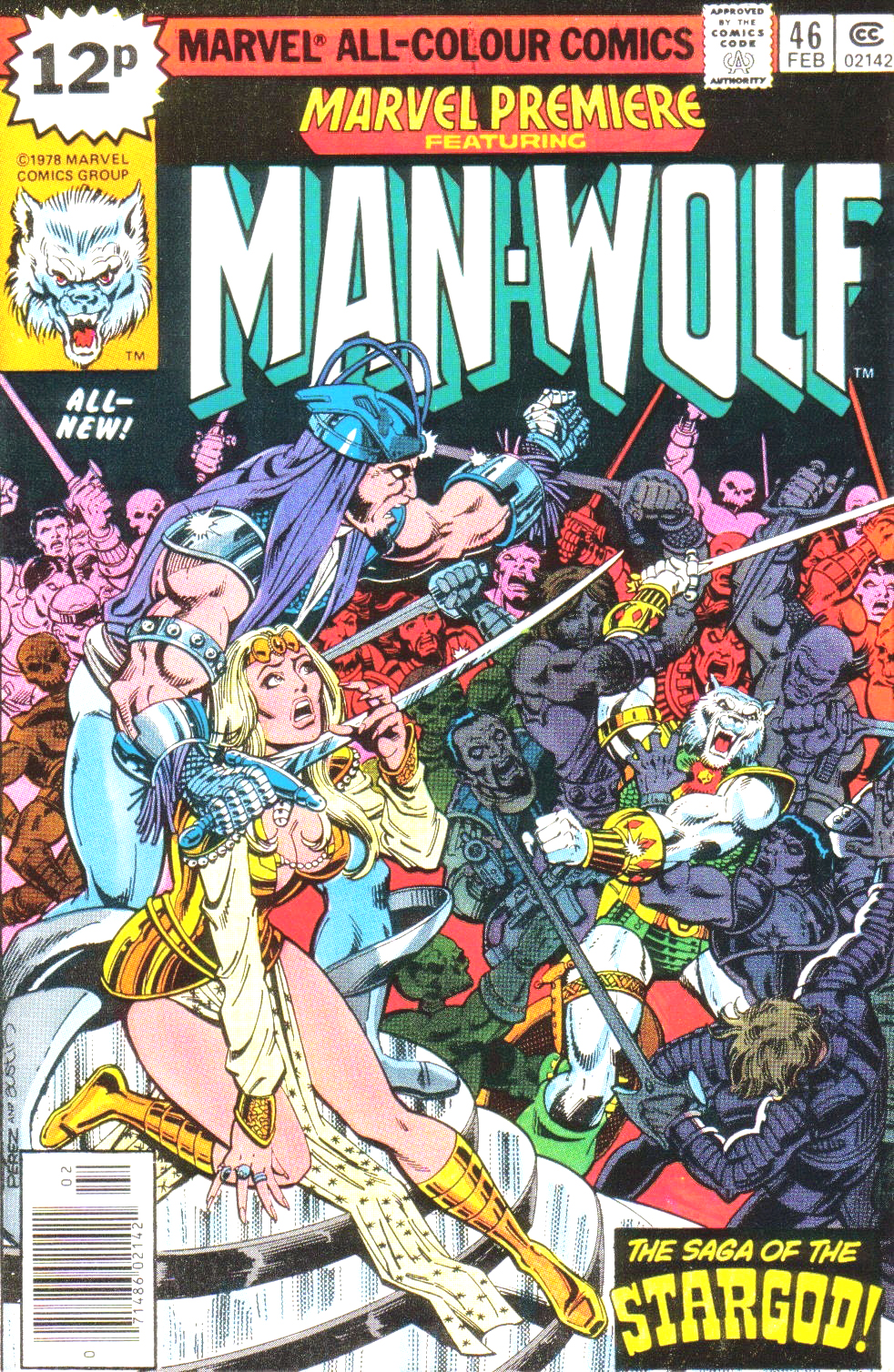 Les choses changent dans les deux épisodes de Marvel Premiere (traduits dans Eclipso #70, pour ceux qui suivent). Jusque-là, Kraft avait mené une réflexion sur les pouvoirs du loup-garou, expliquant que la conscience de Jameson revenait à mesure qu’il s’éloignait de la pleine lune, et que ses pouvoirs de lycanthrope croissaient s’il se rapprochait du satellite terrestre, par exemple à bord d’un engin spatial. Les prisonniers de la station spatiale tentent de s’emparer de la gemme qu’il porte au cou, et dans Marvel Premiere #45, les lecteurs découvrent qu’elle provient d’un autre monde, dont un portail ouvre sur la Lune. Là, l’Homme-Loup apprend qu’il est considéré comme un dieu stellaire, le Stargod. La conscience de Jameson prend alors le contrôle de son double lupin et, endossant un costume de guerrier de fantasy, il part à la reconquête d’un royaume que convoite Arisen Tyrk, le ravisseur de Krystin Sanders, sa dulcinée sur Terre.