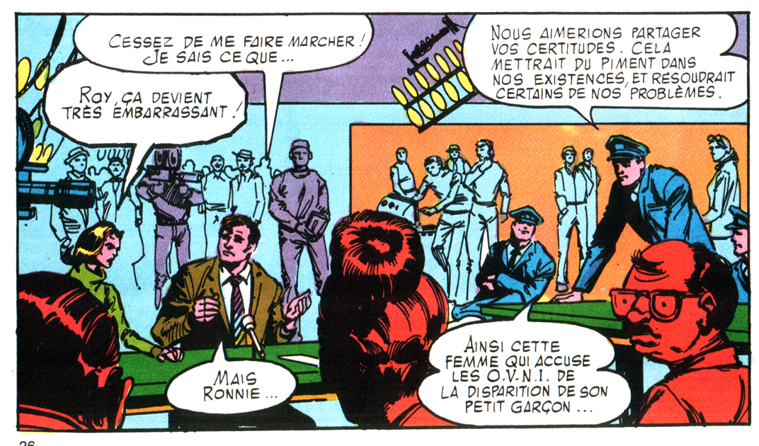 D’une certaine manière, cet album de Sagédition, reprenant le format et le contenu du hors série gigantesque consacré à l’adaptation Marvel de Rencontre du Troisième Type (le lettrage d’André Schwartz, tout à fait correct malgré les imprécisions et les fautes habituelles chez Sagédition, ne fera pas oublier celui de la VO, assuré par le grand Gaspar Saladino), c’est un peu ma « Pierre de Rosette » à moi pour comprendre Simonson. Je ne saurais dire dans quel ordre j’ai lu ses travaux, mais celui-ci compte parmi les premiers, et surtout, sortant de l’univers des super-héros, il m’offre alors des clés pour comprendre le graphisme sans être parasité par les univers mis en scène. Je crois même que je n’avais pas encore vu le film de Spielberg qu’il illustre, c’est dire comme, pour moi, l’album est associé à une découverte visuelle.
