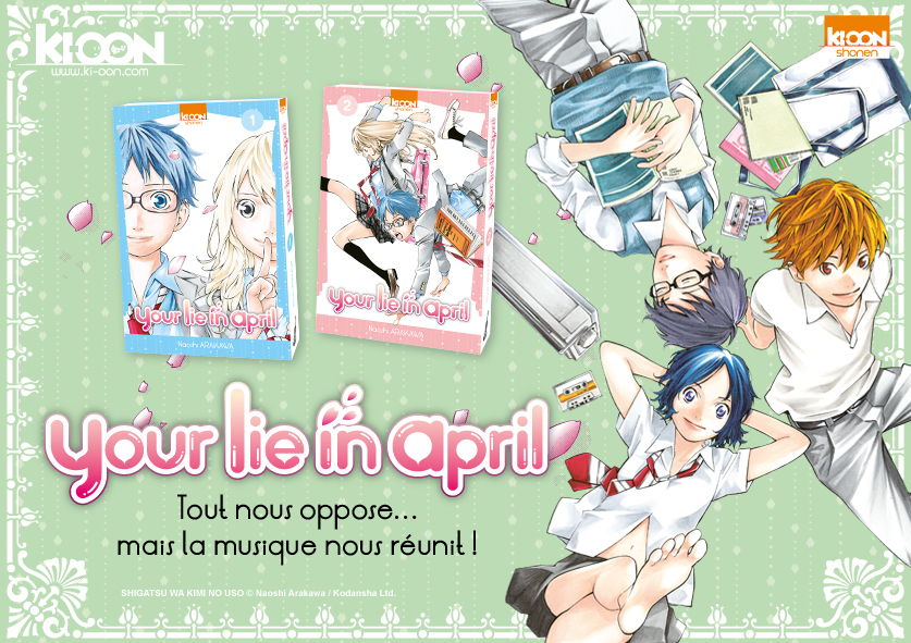Les éditions Ki-oon nous annoncent ce jour la publication dès le mois d'avril 2015 de la série Your Lie in April.