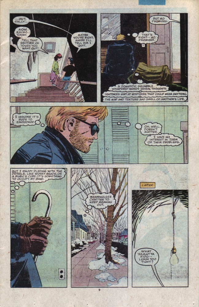 Après la mini-série Longshot, Ann Nocenti arrive sur la série, marquant le début de ce qui reste une des meilleures périodes du titre, qui au départ ne devait durer que le temps d’un fill-in (l’épisode de Windsor-Smith) et qui s’est prolongé en raison du désistement d’Englehart, les événements de l’épisode en question l’ayant obligé à revoir ses plans, sans oublier que la sortie récente à ce moment-là de Born Again apportait une certaine pression.
