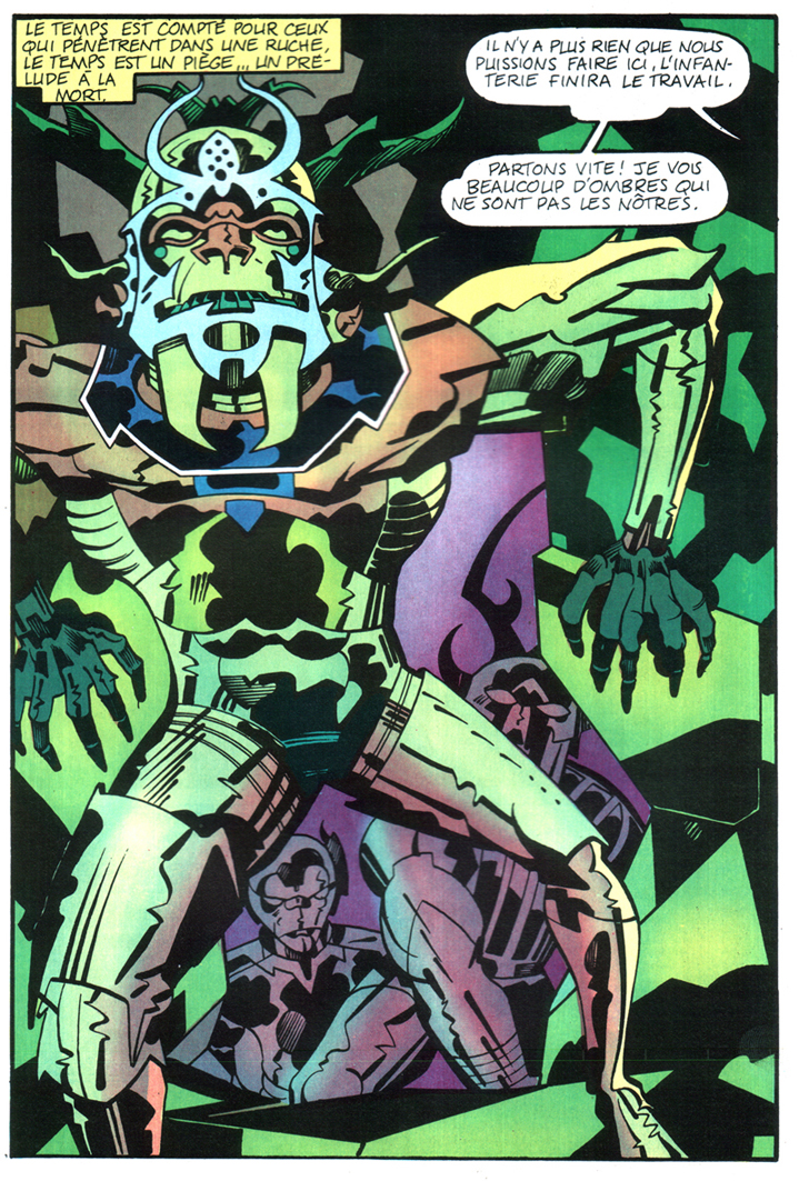 N’ayant pas les épisodes en VO (et là, je repense que j’ai vu passer des éditions de Pacific, il y a vingt ans, et que je n’avais pas l’argent à l’époque : que le sort est taquin !), je me réfère aux éditions que j’ai sur mes étagères.
