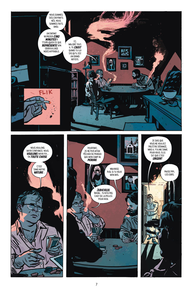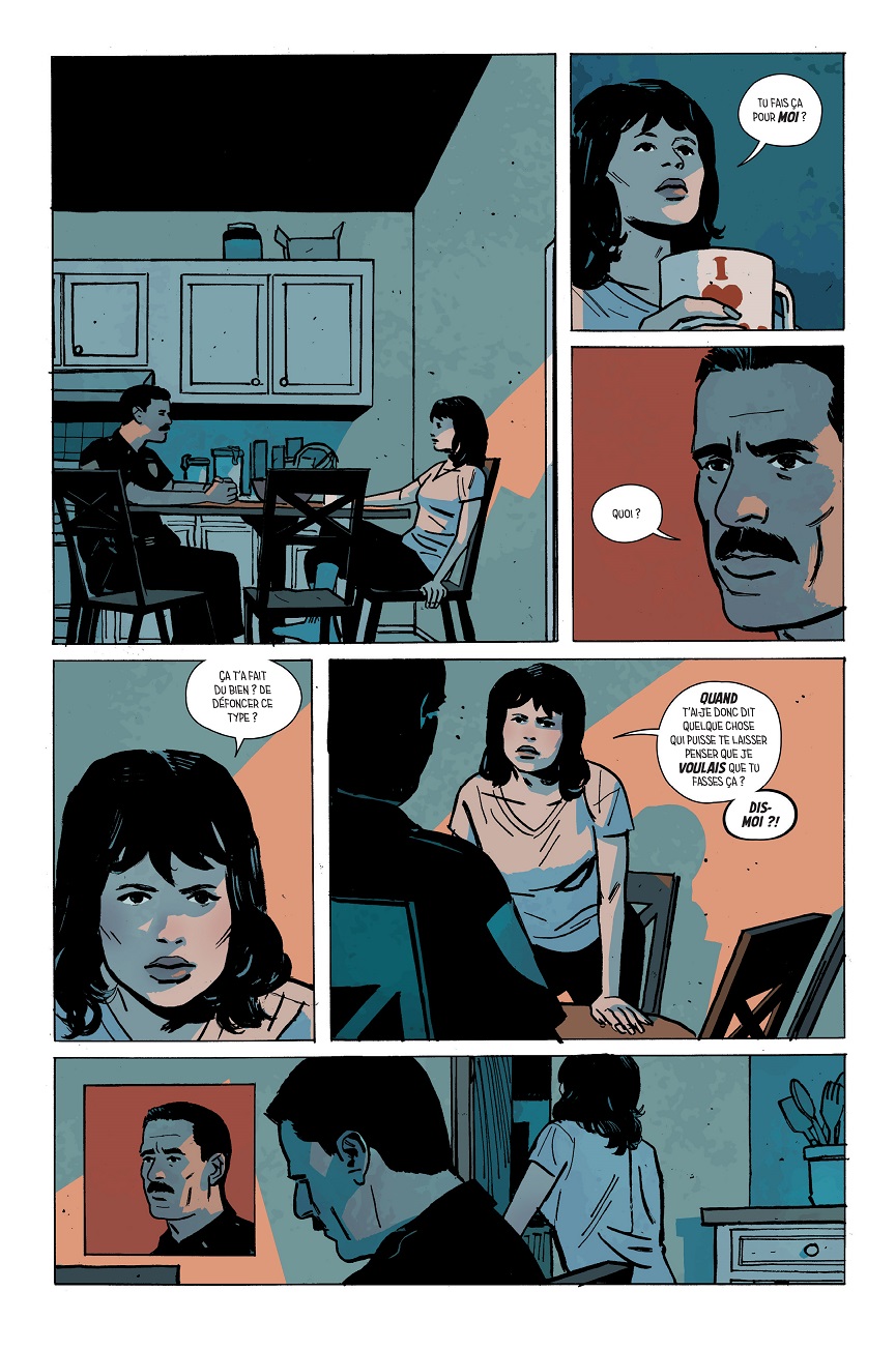 MembreCa se réveille gentiment en fin d'ouvrage, et on peut espérer que ça bouge enfin dans le prochain. M'enfin douze épisodes pour démarrer, c'est beaucoup. Heureusement, il y a le boulot de Paul Azaceta, particulièrement efficace notamment lors des scènes muettes, assez nombreuses. J'adore les petites cases incrustées dans les grandes, qui zooment sur un fait important où sur un regard. Et si le manque de foi de Kyle commence à sérieusement faire redondant (au point que le cureton s'en émeut lui-même ! Ce sont les persos qui se mettent à critiquer la série dans laquelle ils apparaissent, maintenant !), la scène de dispute avec son ex-femme est plutôt efficace. Bref, y a des bons moments, mais on aimerait quand même que ça bouge un peu.