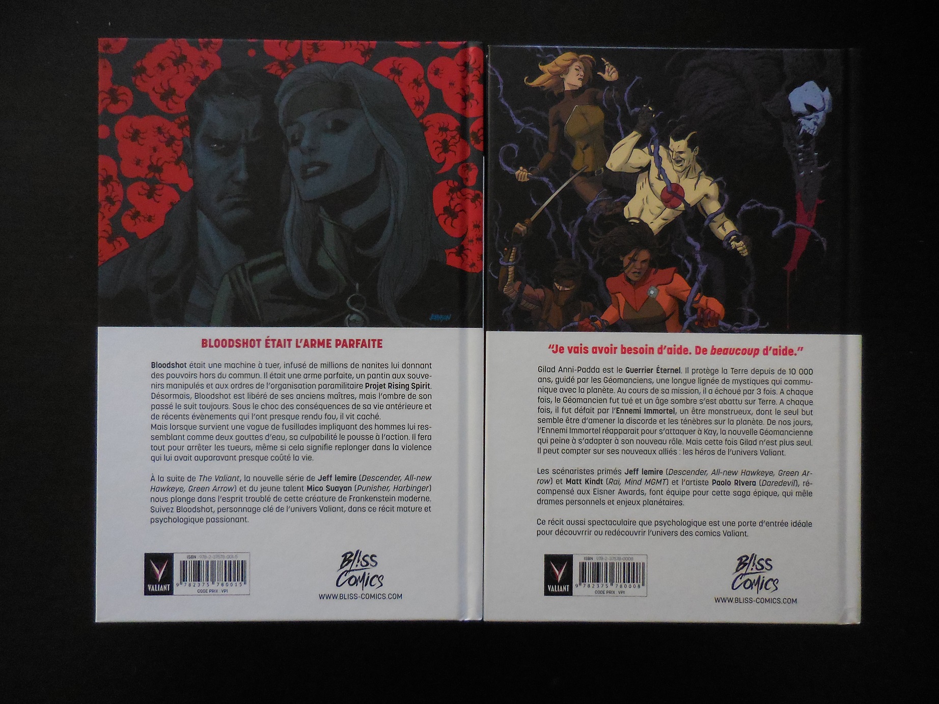 [u:1y6mo99f]Les futures sorties :[/u:1y6mo99f] * que des sorties numériques cet été avec [i:1y6mo99f]Unity[/i:1y6mo99f] et [i:1y6mo99f]X-O Manowar[/i:1y6mo99f] * Fin 2016 en librairie : - Bloodshot Reborn t.2 et Ninjak t.1 en septembre - Quantum & Woody t.2 en octobre - Rai t.1 en novembre (un volume massif de 356 pages qui reprendra les 2 tomes publiés par Panini et le tome 3 inédit) *2017 en librairie : - Book of Death - Ivar, Timewalker - Faith Source : [url:1y6mo99f]http://www.mdcu-comics.fr/news-0021346-valiant-les-titres-de-bliss-comics-pour-le-second-semestre.html[/url:1y6mo99f]