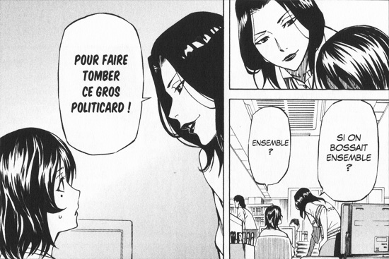 Mais dès la fin du premier tome avec l’enlèvement d’Haruka, la copine journaliste de Yûji, l’auteur casse le rythme établi dans le premier tome et en profite pour nous proposer une réflexion sur le rôle des médias et les abus de certains journalistes prêts à tout pour faire vendre. Ce passage inattendu s’avère plutôt efficace car tristement réaliste.