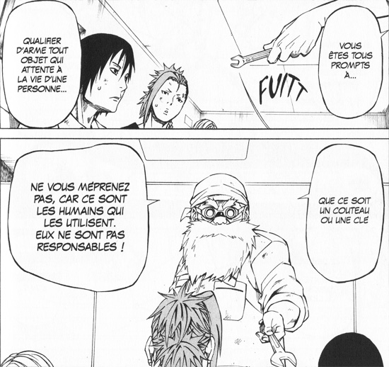 En fait ce tome est relativement complet et l’auteur développe pas mal d’aspects à la fois, évitant ainsi la monotonie. Toujours avec ce désir de nous faire réfléchir sur cette fameuse loi de réparation, il s’amuse à nous démontrer que tout n’est pas blanc ou noir et qu’il est parfois difficile de savoir si cette loi est juste. Ainsi, on a le point de vue du côté du condamné et de sa famille ce qui est vraiment très intéressant. Mais la partie la plus intéressante du tome pour ma part est la dernière histoire qui est à la fois poignante et intelligente. Par contre, certains chapitres s’avèrent un peu poussifs en terme de narration et le rythme en pâtit quelque peu.