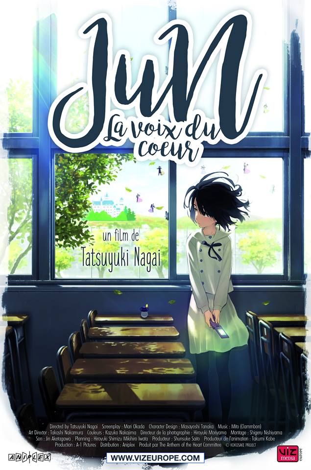 Sorti fin 2015 au Japon, le film d'animation Jun, la voix du cœur (Kokoro ga Sakebitagatterunda.) fera l'objet d'une diffusion en avant-première en France le samedi 10 décembre à 19h00 au forum des images à Paris.