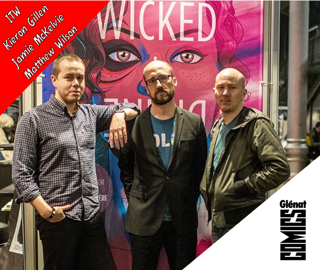 Il est rare de pouvoir rencontrer le scénariste, le dessinateur et le coloriste d’une série lors d’une interview. Et justement, pour la promotion de leur nouvelle série The Wicked + The Divine, Glénat comics a invité Kieron Gillen (le scénariste), Jamie McKelvie (le dessinateur) et Matthew Wilson (le coloriste), les papas de la série que nous avons pu rencontrer pour une longue interview passionnante à la Comic Con de Paris. Découvrez ainsi la première partie de cette rencontre abordant la série mais aussi le processus créatif de leurs oeuvres :