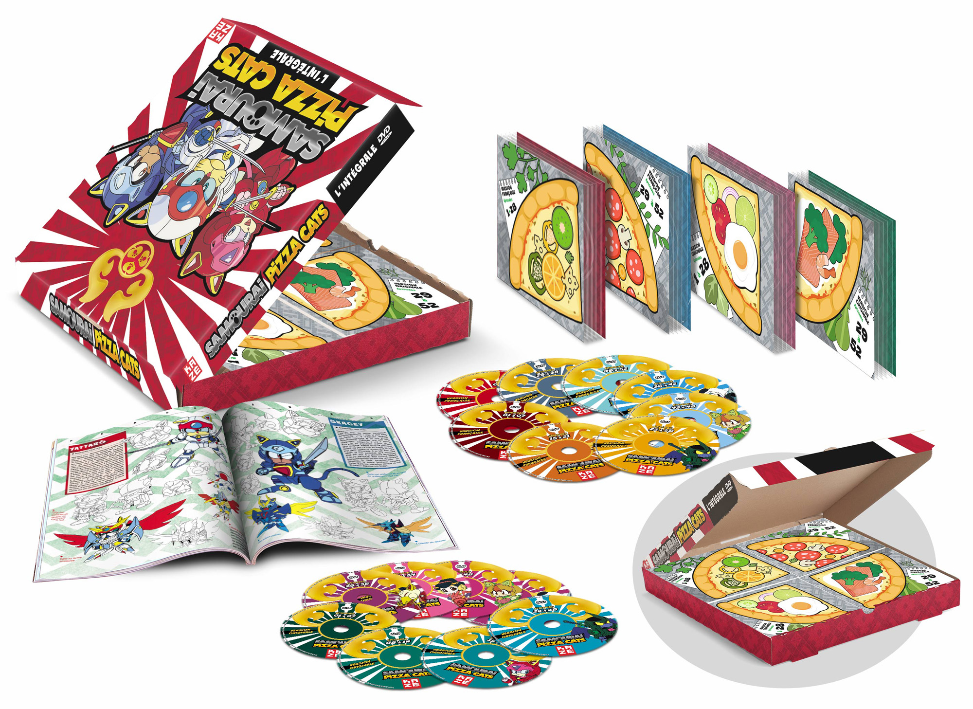 Samourai Pizza Cats... voilà une série qui devrait évoquer pas mal de souvenirs chez certains ! Les éditions Kaze ont décidé de sortir l'intégrale de la série sous la forme d'une édition collector limitée en forme de carton de pizza.