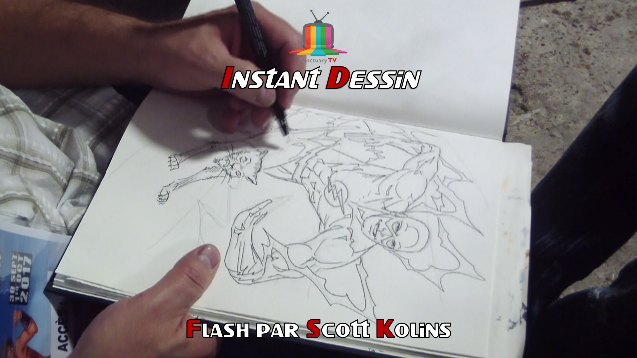 2ème instant dessin issu de la Paris Manga, nous avons eu le privilège d'oberver Scott Kolins, grande star des comics qui a notamment illustré Flash lors du run de Geoff Johns, dessinant l'éclair rouge avec un chat !