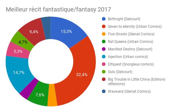 Depuis le 23 janvier, le site associé aux groupes facebook "Fans de comics", "Fans de comics books", "Les crinqués de super-héros" & "BD, comics et mangas en Français – Lecteurs du Québec" vous proposaient d'élire vos meilleures lecturespar catégorie, il est temps de découvrir le premier vainqueur avac la catégorie fantastique/fantasy 2017 !