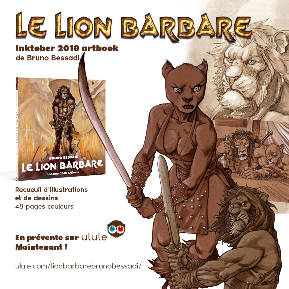 J'ai pris tellement de plaisir à réaliser mon inktober 2018 que j'ai eu envie de prolonger son existence, qui se limite d'ordinaire au seul mois d'octobre, sous la forme d'un beau livre au format carré de 48 pages. 31 dessins, c'est beaucoup et c'est peu, c'est pourquoi ce sympathique recueuil contiendra aussi une bonne dizaine de pages de sketchbook et de dessins inédits dans la thématique lions et heroic fantasy.