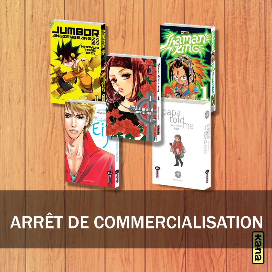 Il y a des jours avec et des jours sans. Après une très bonne nouvelle de KAZE hier, KANA prend tout à revers et annonce à regret on le sent, l'arrêt de commercialisation de plusieurs séries. Le plus marquant reste à mon humble avis Shaman King, série qui a une place particulière dans le coeur des français et qui continue de se vendre très bien. Mais, l'éditeur s'explique et on comprend qu'il n'y est pour rien.