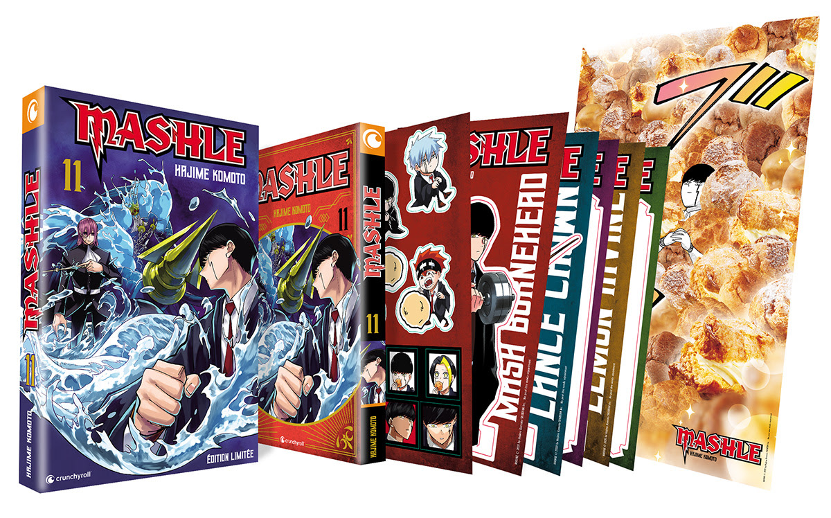 Tout d'abord, dès le 26 octobre, vous pourrez vous procurer l'édition limitée du tome 11 de Mashle qui contiendra :