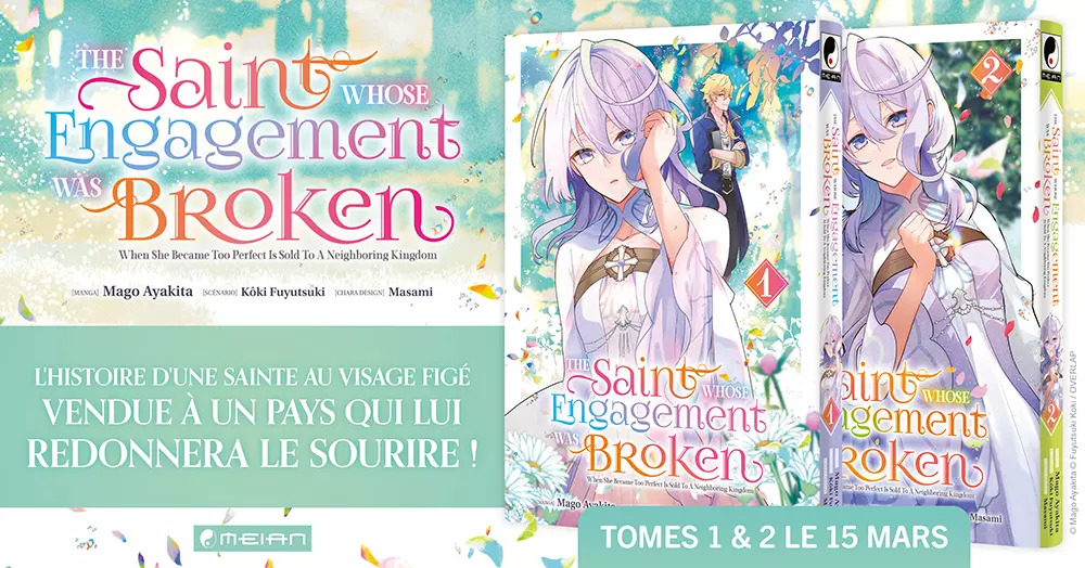 Un nouveau shôjo arrive au catalogue des éditions Meian dès le mois de mars : The Saint Whose Engagement Was Broken de Mago AYAKITA et Kouki FUYUTSUKI. En cours de parution au Japon avec 3 tomes à son compteur, cette série mêlant romance et fantasy, aborde des questions de perfection, de reconnaissance sociale, et de la quête d'identité personnelle. Rendez-vous le 15 mars en librairie pour la parution des deux premiers volumes.