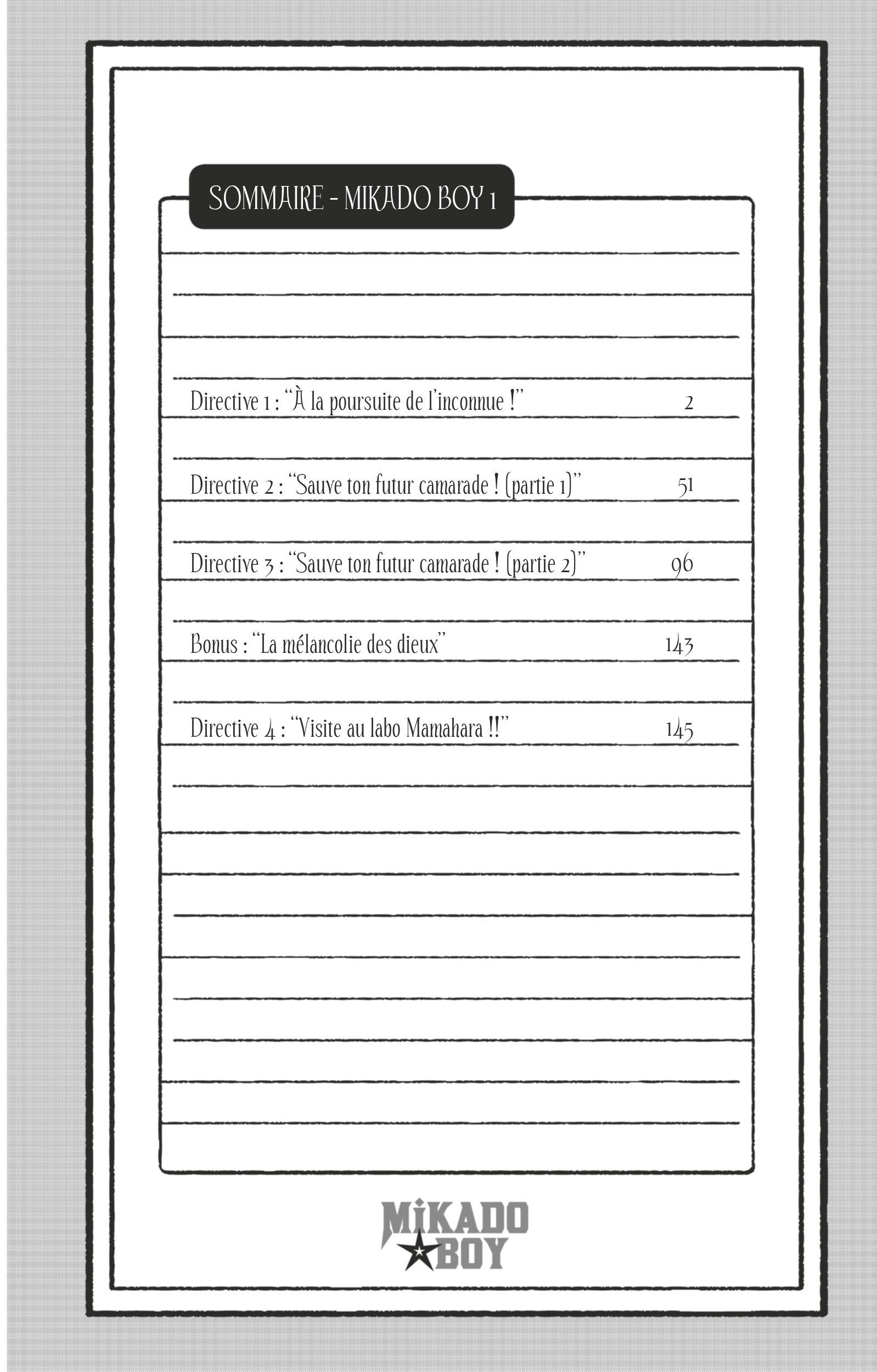 Après une partie assez palpitante, Mikado Boy repart sur un nouvel arc. Plus calme que le précédent, ce dernier paraît peiner un peu à démarrer, donnant au volume un côté un peu plus "mou" au niveau de la lecture (la fluidité en souffre légèrement d'ailleurs), mais en réalité c'est une fausse impression. En effet, on ne tarde pas à se rendre compte que l'auteur nous a emmené sur des fausse...