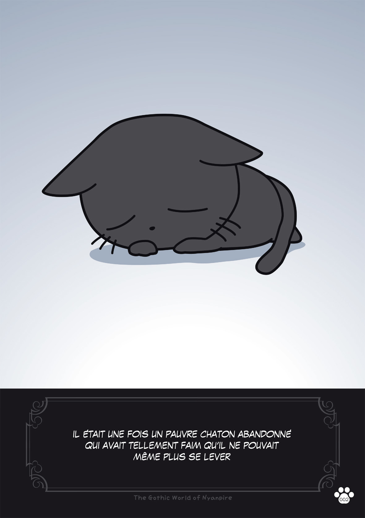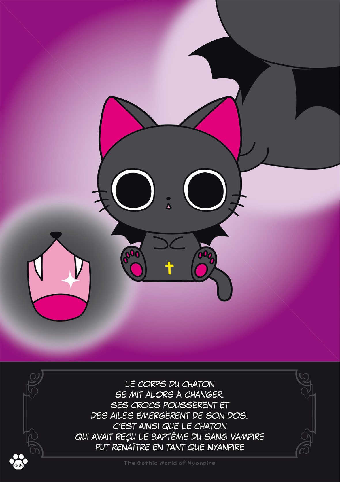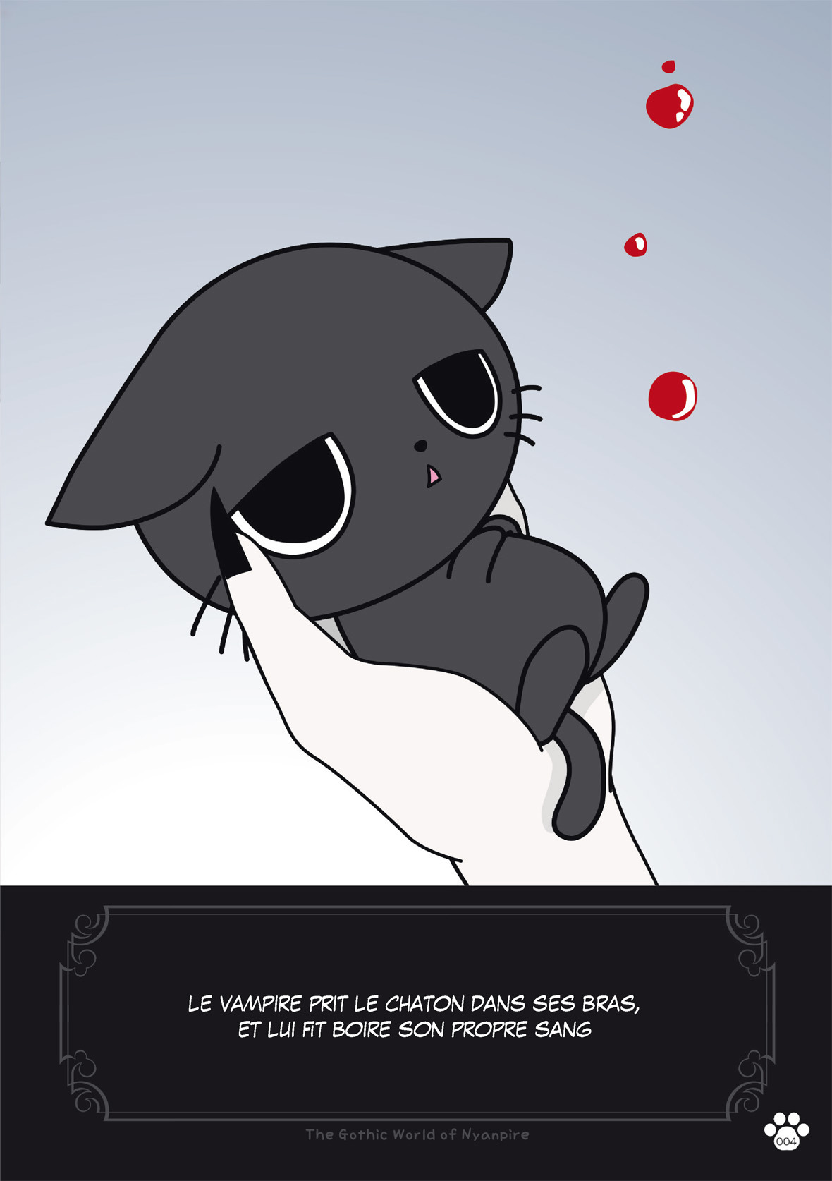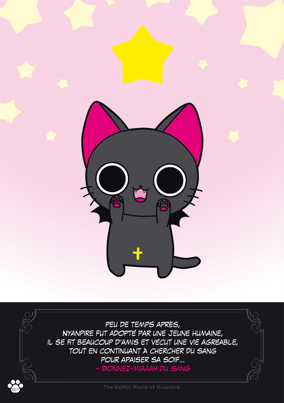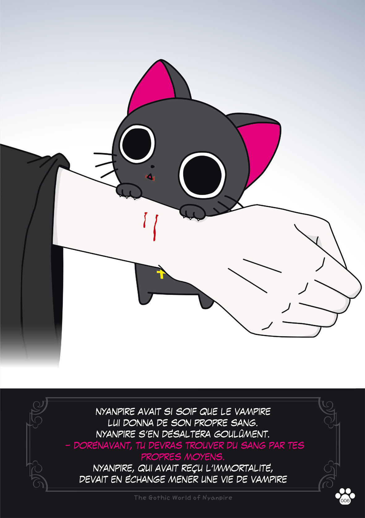 Il était une fois un pauvre petit chaton abandonné. Il avait tellement faim qu’il ne tenait plus debout. Alors que la minuscule étincelle de sa vie allait s’éteindre, un vampire sortit des ténèbres et donna son propre sang au chaton. Il lui fit ainsi don de la vie éternelle… le Nyanpire était né ! Une créature redoutable à laquelle personne ne pourrait résister…