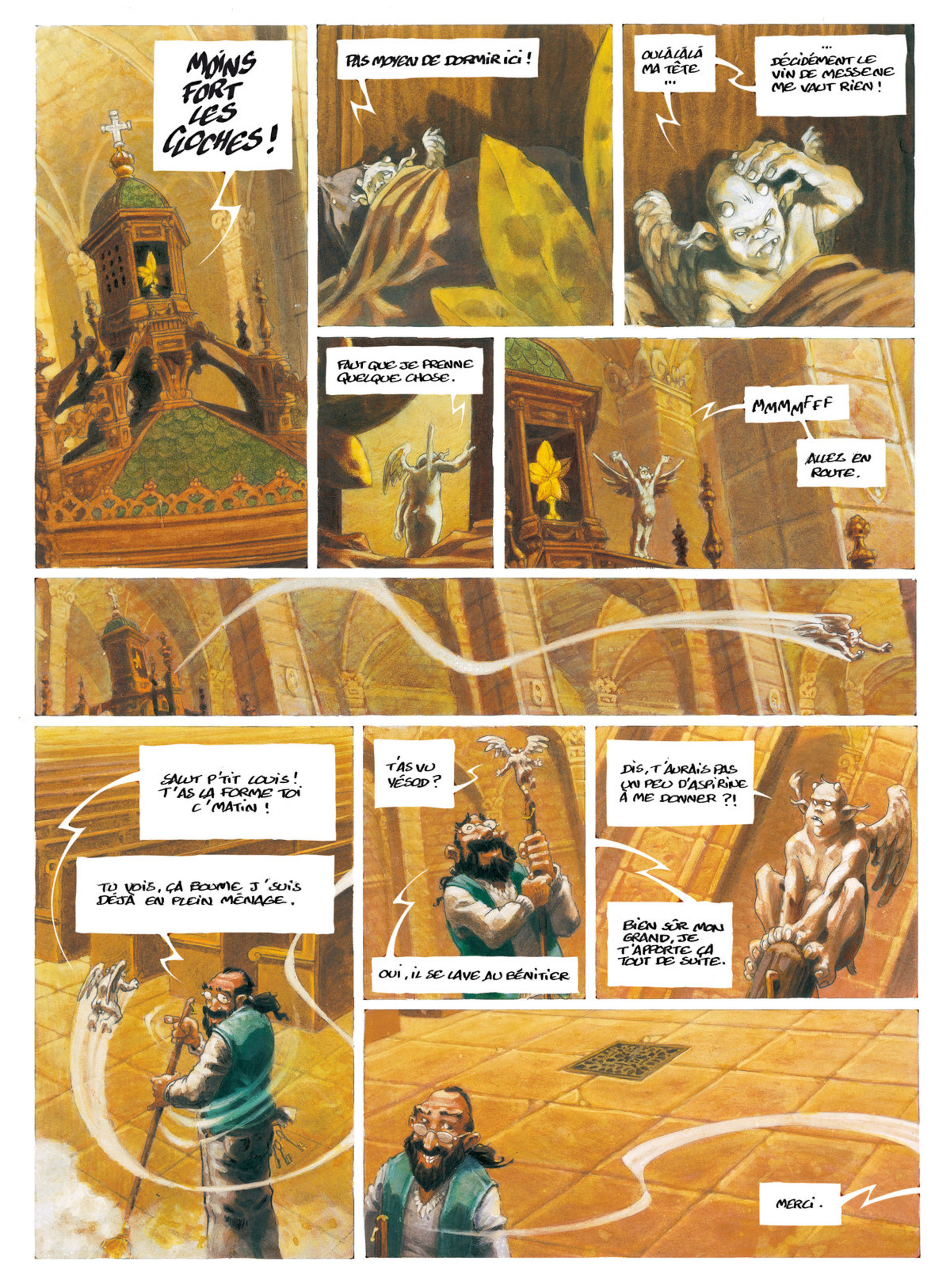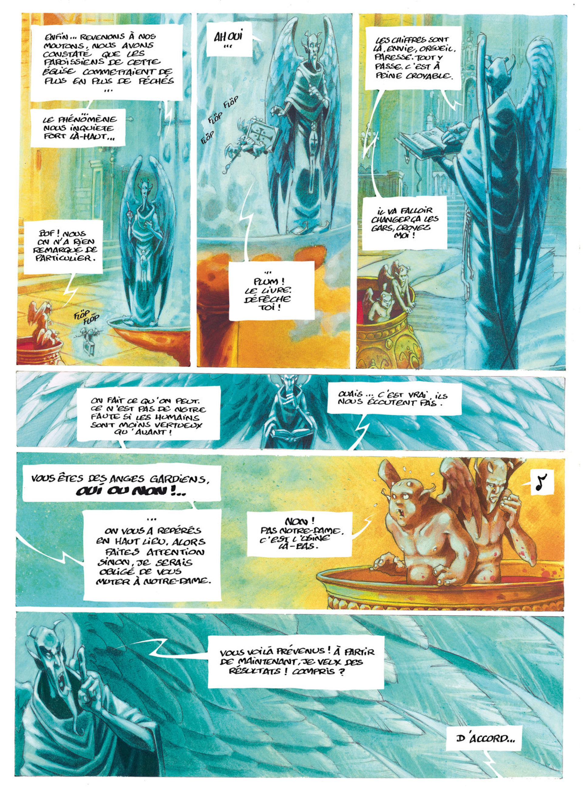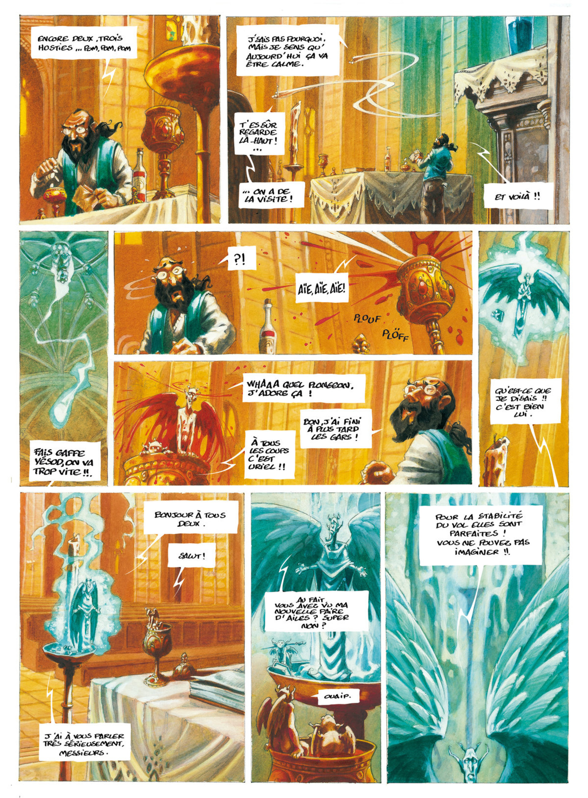 Leur quotidien se partage entre les conversations enjouées avec P'tit Louis, l'homme à tout faire de l'église, la surveillance discrète du curé et les petites fêtes improvisées derrière les bénitiers de Saint-Eustache.Cette quiétude va être interrompue par le suicide d'un mendiant dont Yésod était religieusement responsable. La nouvelle angelette sortie du défunt est sympathique à souhait et Jéliel tombe sous le charme. Mais les autorités divines menacent Yésod de le muter à Notre-Dame, endroit redoutée par les anges pour sa cadence de travail ! quant au curé, il présente des signes d'énervement suspects...