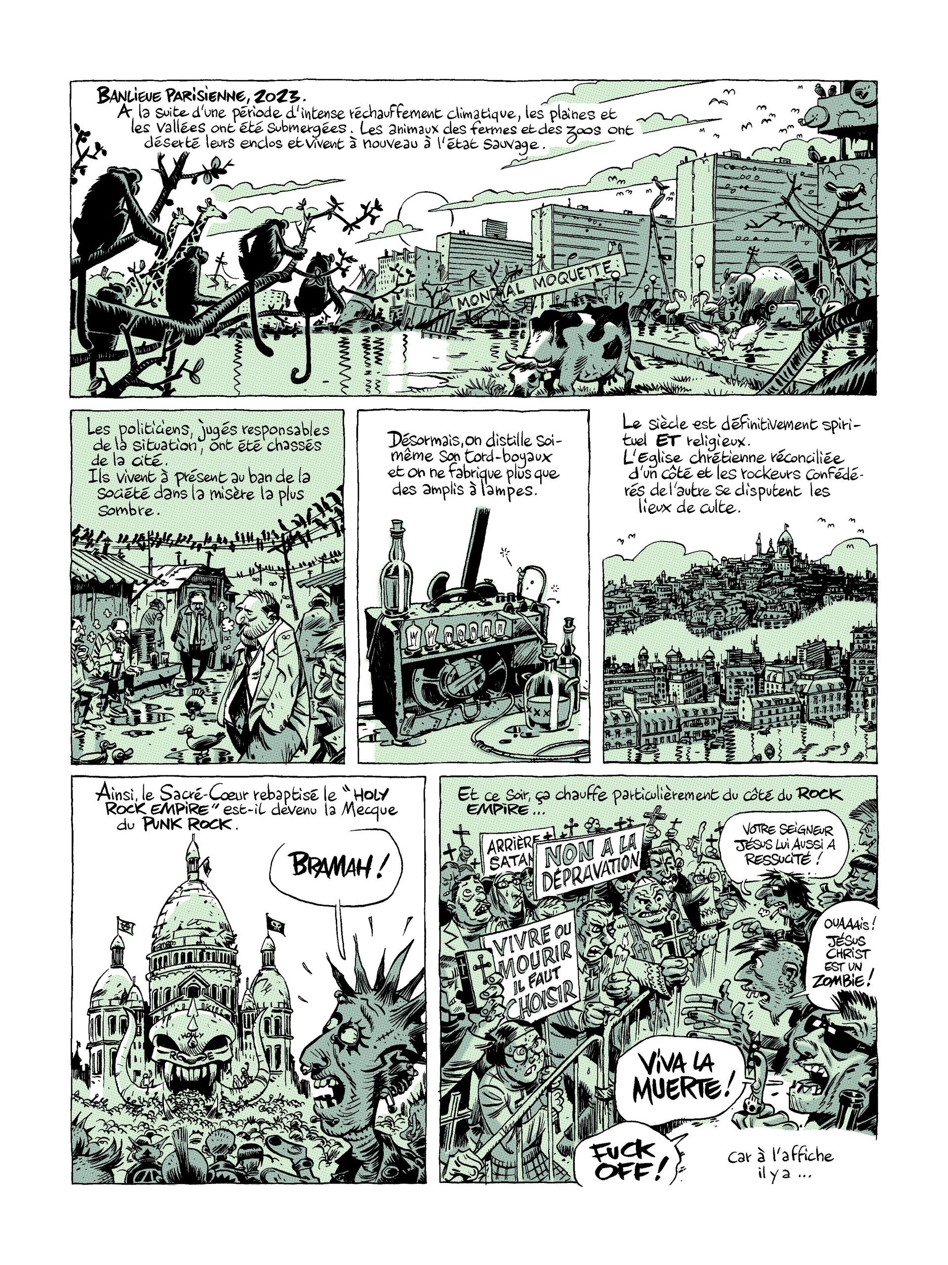 L'Eglise chrétienne réconciliée d'un côté et les rockeurs confédérés de l'autre se disputent les lieux de culte. Ainsi, le Sacré-Coeur rebaptisé le " Holy Rock Empire " est-il devenu la Mecque du punk-rock. Et ce soir, ça chauffe particulièrement du côté du Rock Empire car à l'affiche il y a...