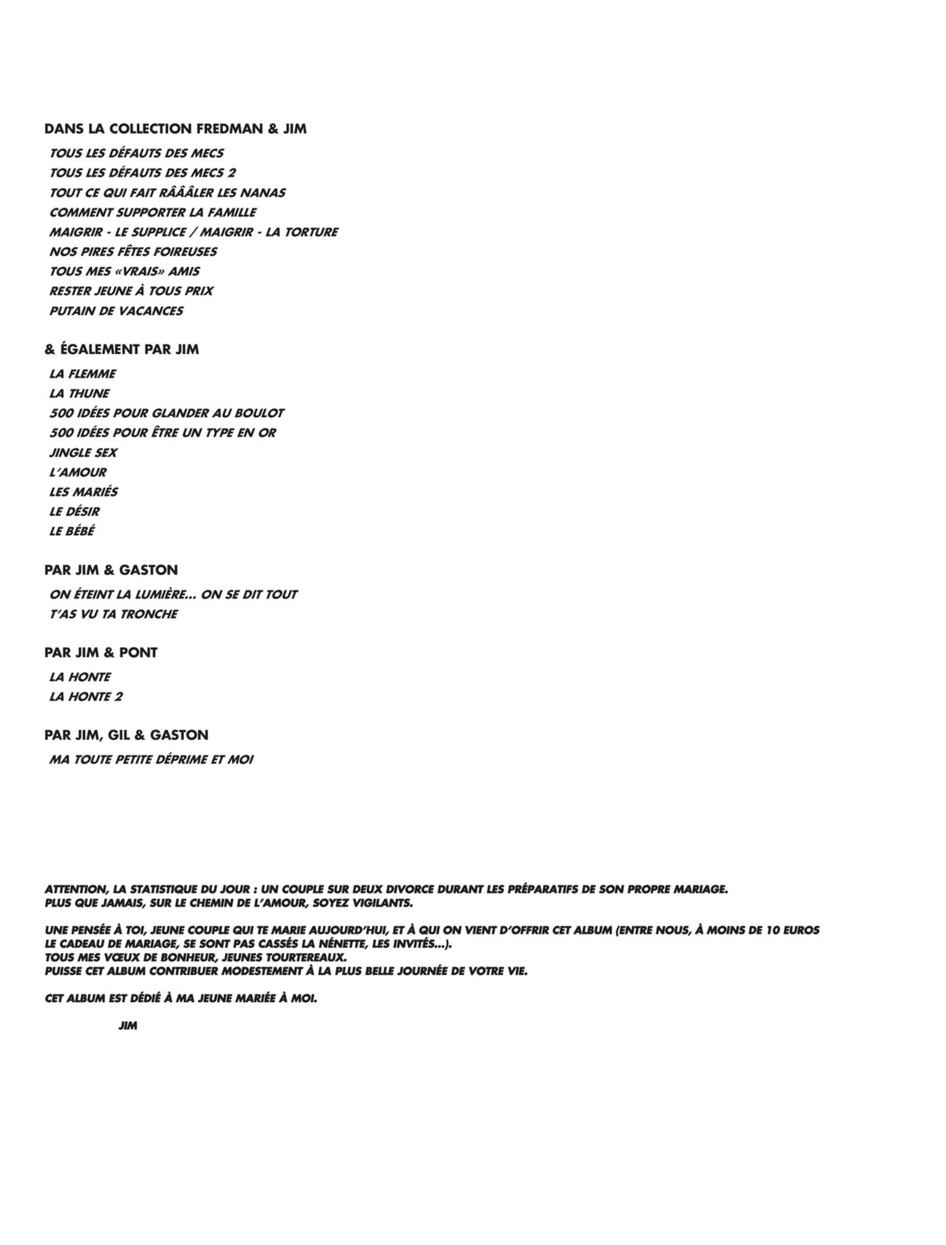 Après l’arrivée du bébé, Jim, s’attaque, par le biais de ses deux personnages Lisa et Mickey, à quelque chose d’encore plus redoutable pour des trentenaires : le mariage ! Et les véritables questions qui s’y rattachent.