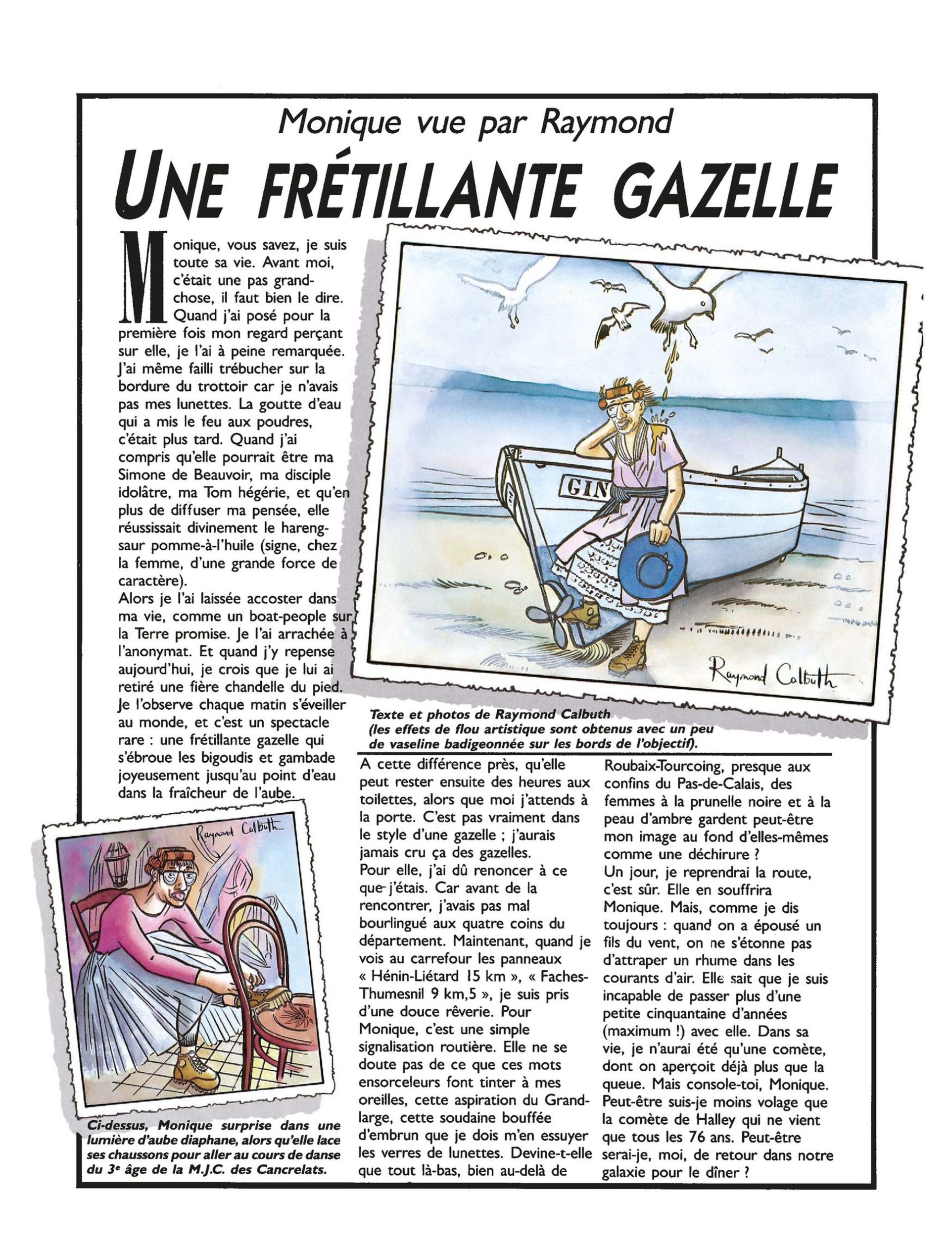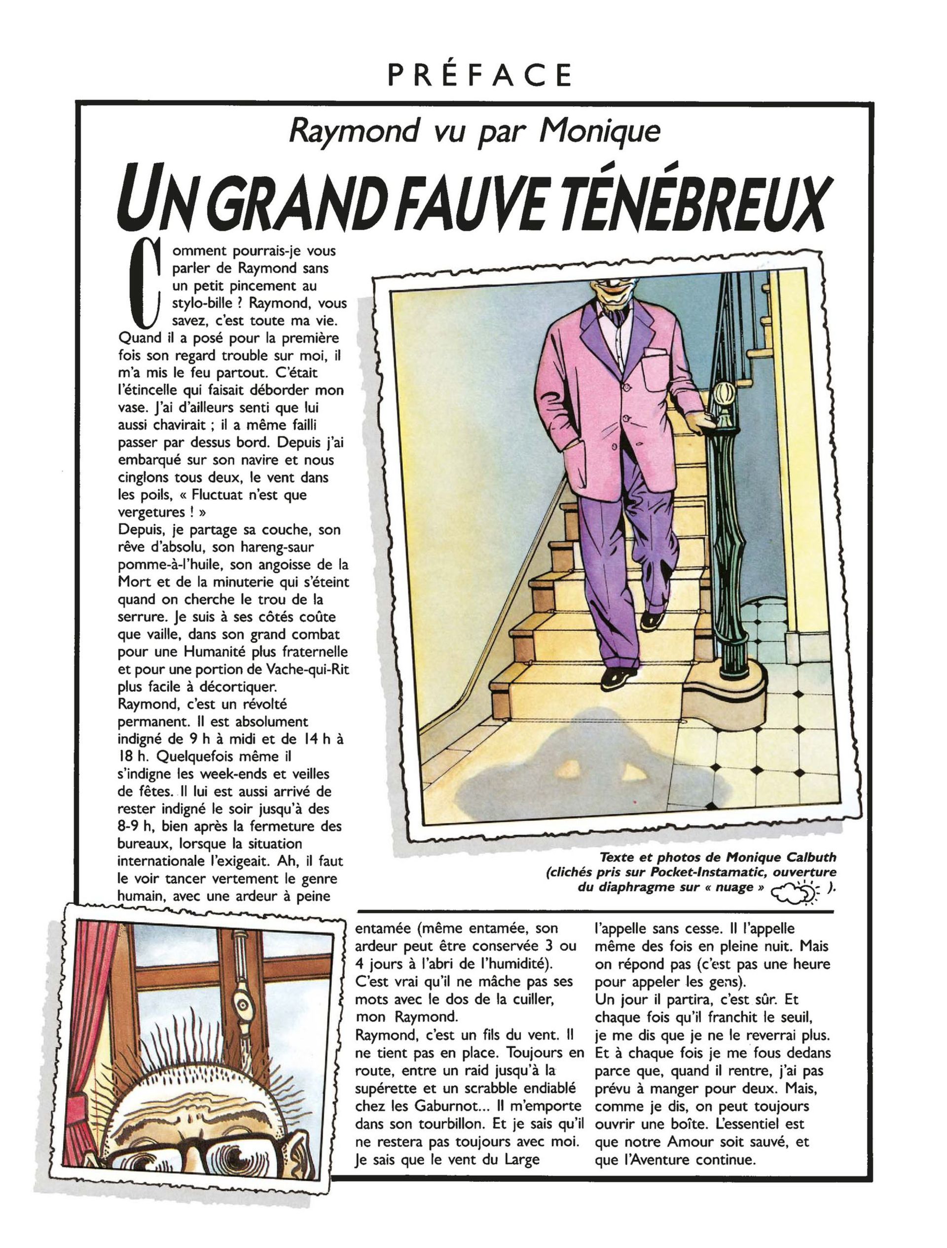 Grâce à Raymond Calbuth, le peignoir matelassé reprend du poil de la bête, les charentaises redressent la semelle, le lyrisme hollywoodien envahit l'arrière-cuisine, fait vibrer la porte du frigo et frissonner la gazinière. La Grande Muraille de Chine est au bout du couloir (à gauche). Voici la vibrante saga de celui qui se fait appeler « l'homme-vache-qui-rit » face à la conspiration des pots de yaourts qui fuient et de la confiture qui dégouline par les trous de la tartine. Entrez dans la grande aventure par la porte du garage...