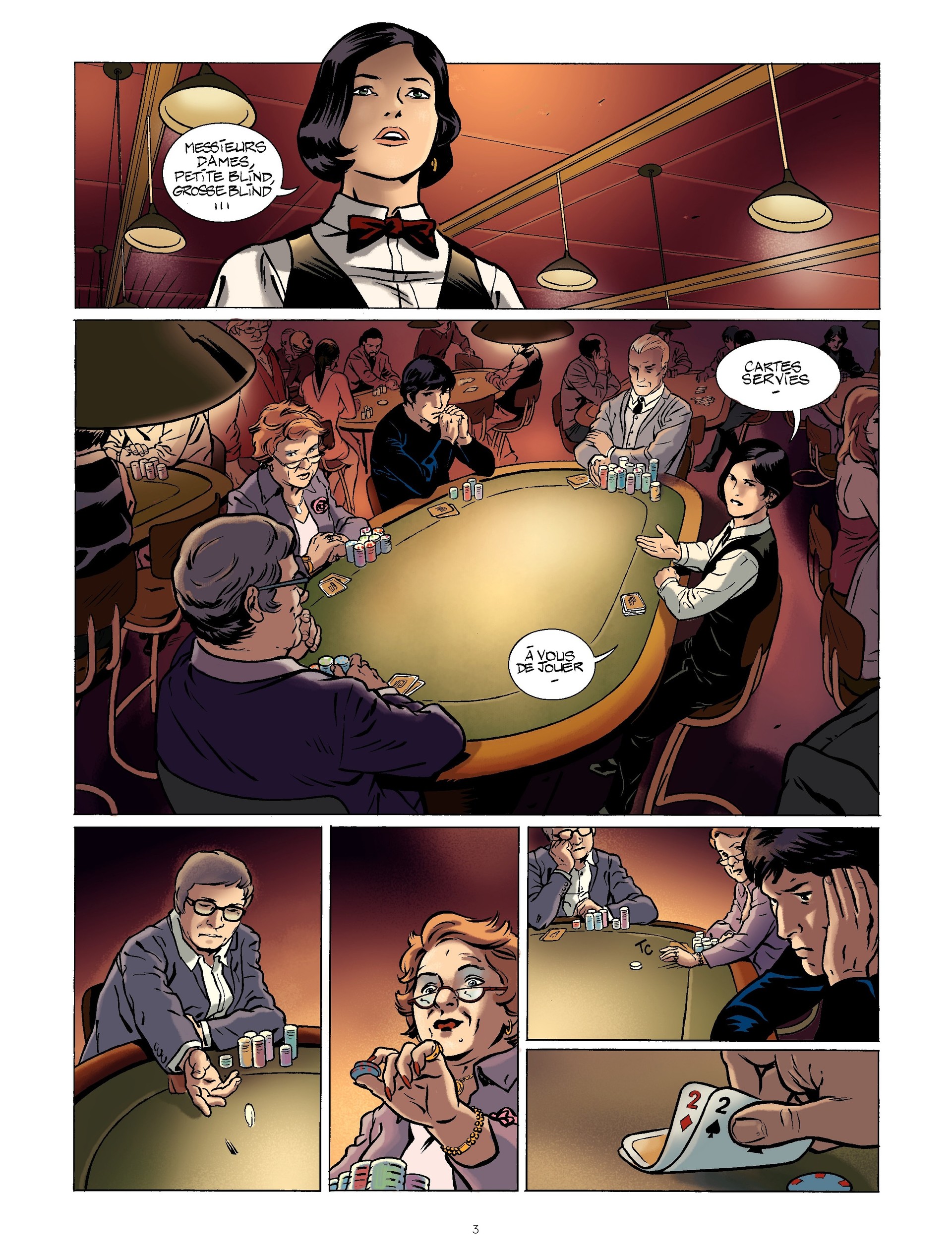 Mark est maintenant à Paris avec Gia et Tom pour le tournoi final de Poker et on en apprend plus sur ces deux derniers mais aussi sur la mort des parents de Mark… Bon, on est plongés un peu plus dans le monde du poker, très documenté donc très réaliste. L’aventure suit son cours donc on ne s’ennuie pas non plus. Mais – Parce qu’il faut un mais tout de même – je trouve que l’histoire, si on met...