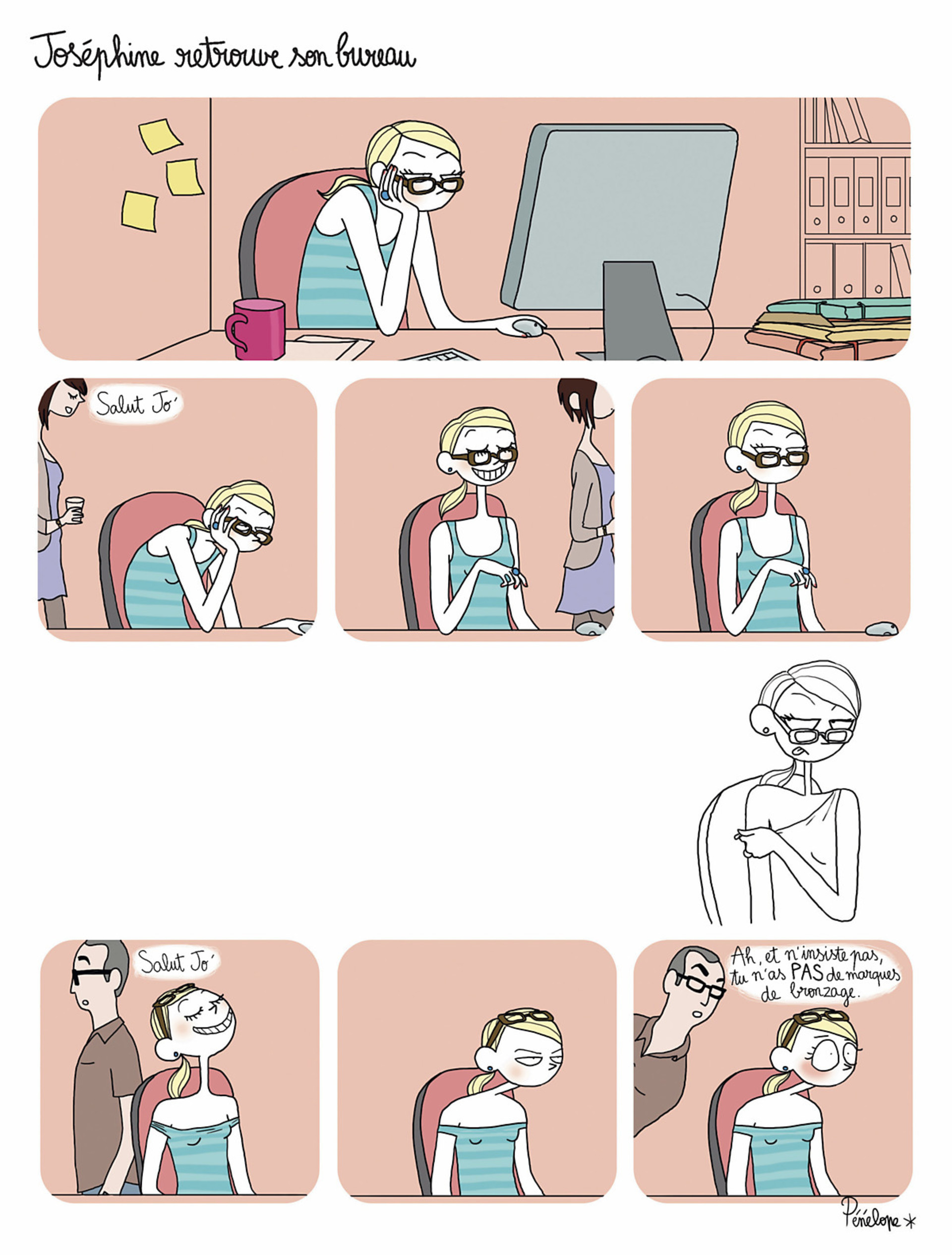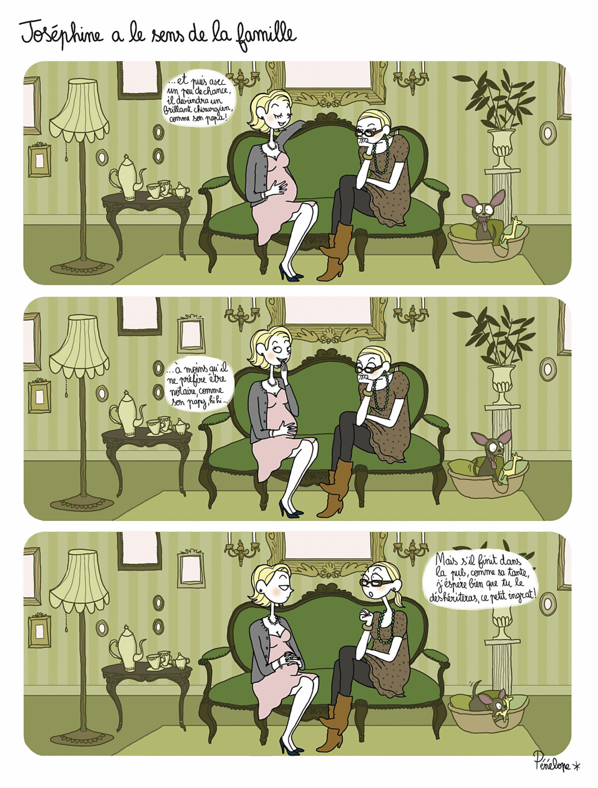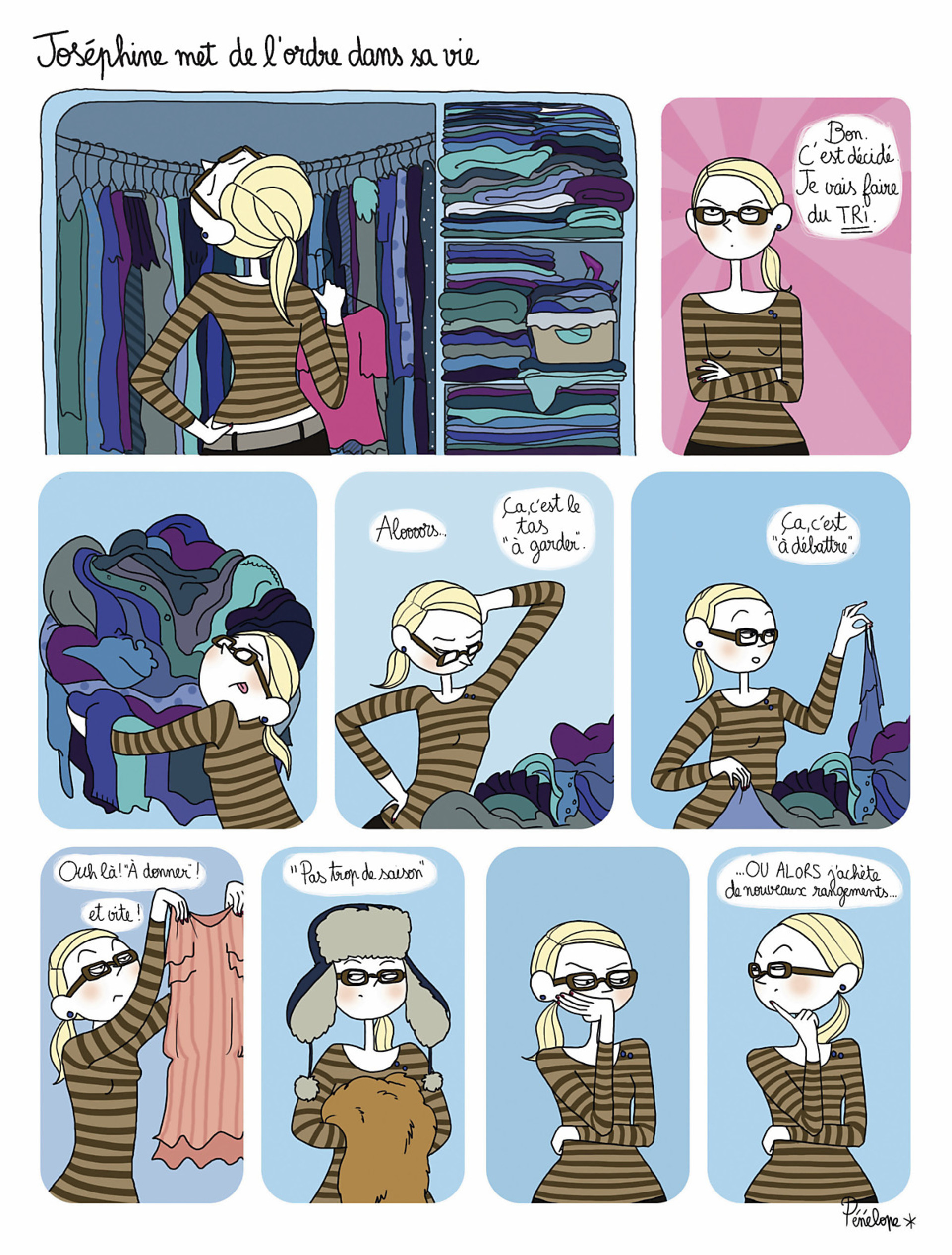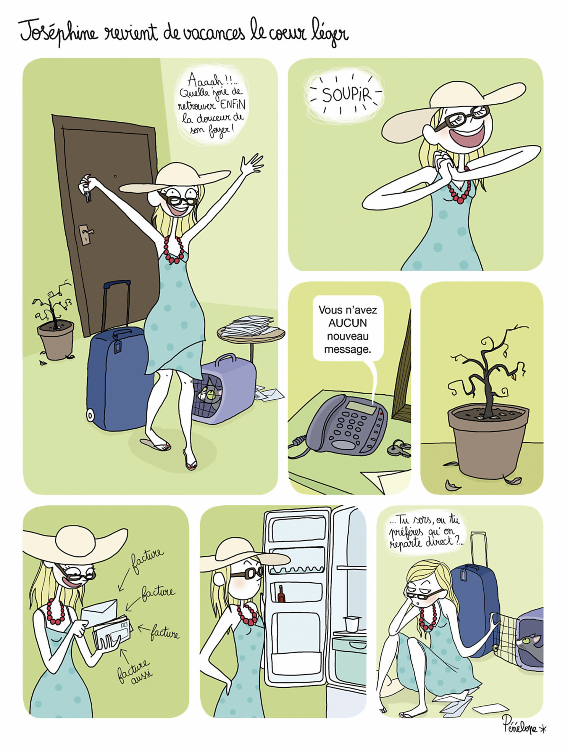 Joséphine a "la trentaine", comme elle dit pudiquement. Elle n’est pas mariée, n'a pas d'enfant, mais elle a un chat. Elle est blonde et menue, mais s'épaissit sensiblement au niveau des hanches. Elle travaille dans un bureau, avec plein de gens qui ne connaissent pas son nom, et un macho abject dont elle ne parvient pas à clouer le bec. Elle a aussi une sœur qui est mariée, et a des enfants blonds, souriants et polis plein sa grande maison.
