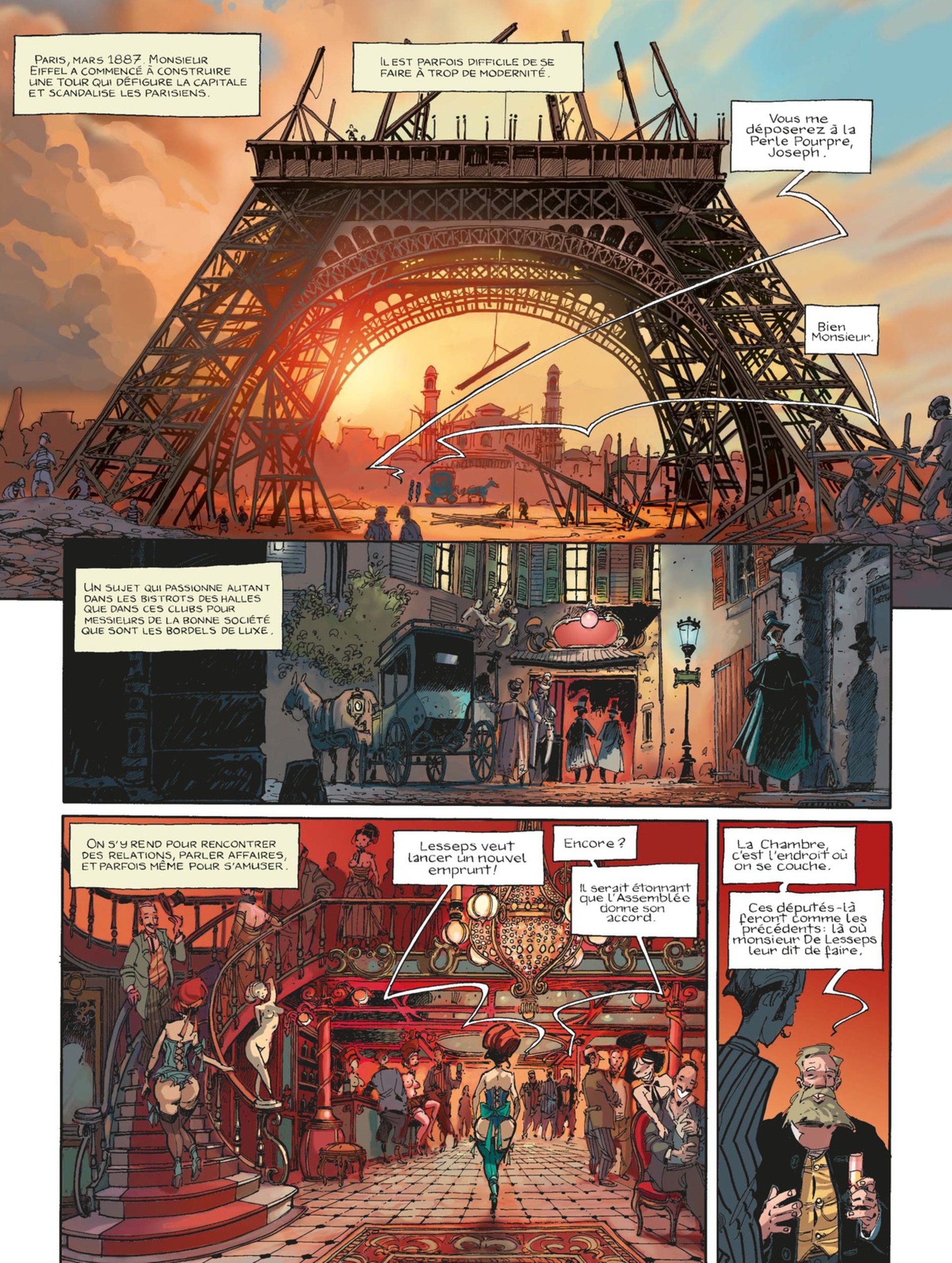 Paris, 1887. La France de la Troisième République s'engage virilement sur la voie du progrèstechnique, de la croissance économique. Le canal de Panama devrait être le symbole du rayonnement de la France à l'étranger, tout comme le sera la Tour Eiffel à Paris.La jeune Chimère est vendue pour 1000 louis aux bons soins de la Perle Pourpre, lupanar des plus sophistiqués où les messieurs en haut de forme vont trouver le repos du guerrier. Pauvre enfant, laissée à 13 ans par ses tuteurs entre les mains d'une mère maquerelle et d'hommes concupiscents… Pauvre enfant, en vérité ? Sous son air de douce et innocente victime, Chimère n'est que force et volonté obstinée. Elle est prête à tous les sourires et à toutes les faveurs pour gagner la liberté qu'elle n'a jamais eue, pour se venger d'une enfance dépossédée. Elle a en tête que le chemin entre elle et son but est une ligne droite qu'elle pourra tracer rapidement et les poings serrés. Mais la vie à la Perle se chargera de lui montrer qu'il n’y a pas de lignes droites. Du moins, pas pour les prostituées.