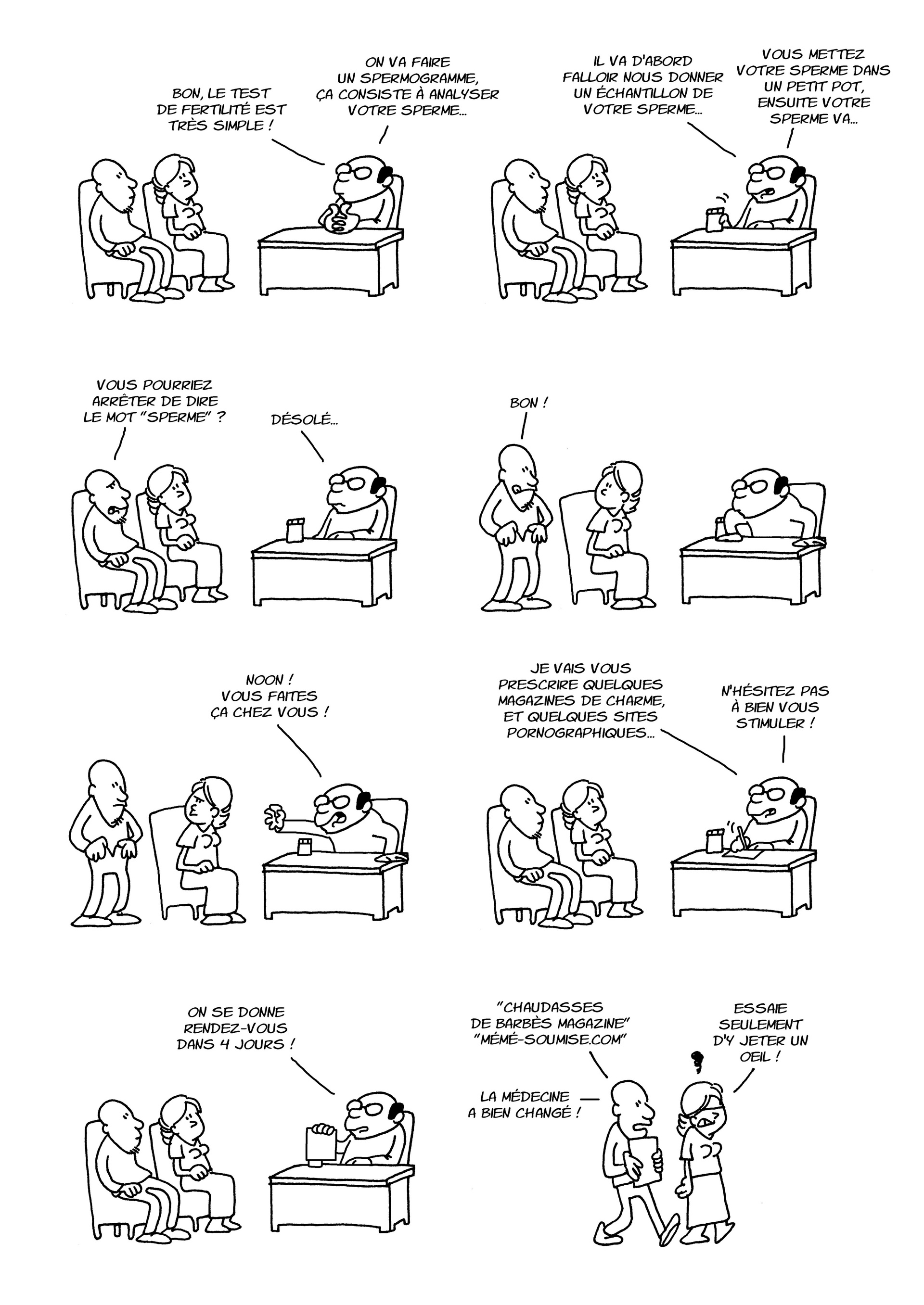 Drôle, tendre et avant tout authentique, cette bande dessinée suit Lapuss' et sa femme dans un parcours humain rempli de situations cocasses et pourtant tellement vraies. La F.I.V. est abordée d’une manière nouvelle, l’humour étant sans doute l’étape suivante vers la reconnaissance de ce traitement qui permet à certains couples de construire une famille. Plus de 200 000 enfants ont vu le jour en France grâce à cette technique.