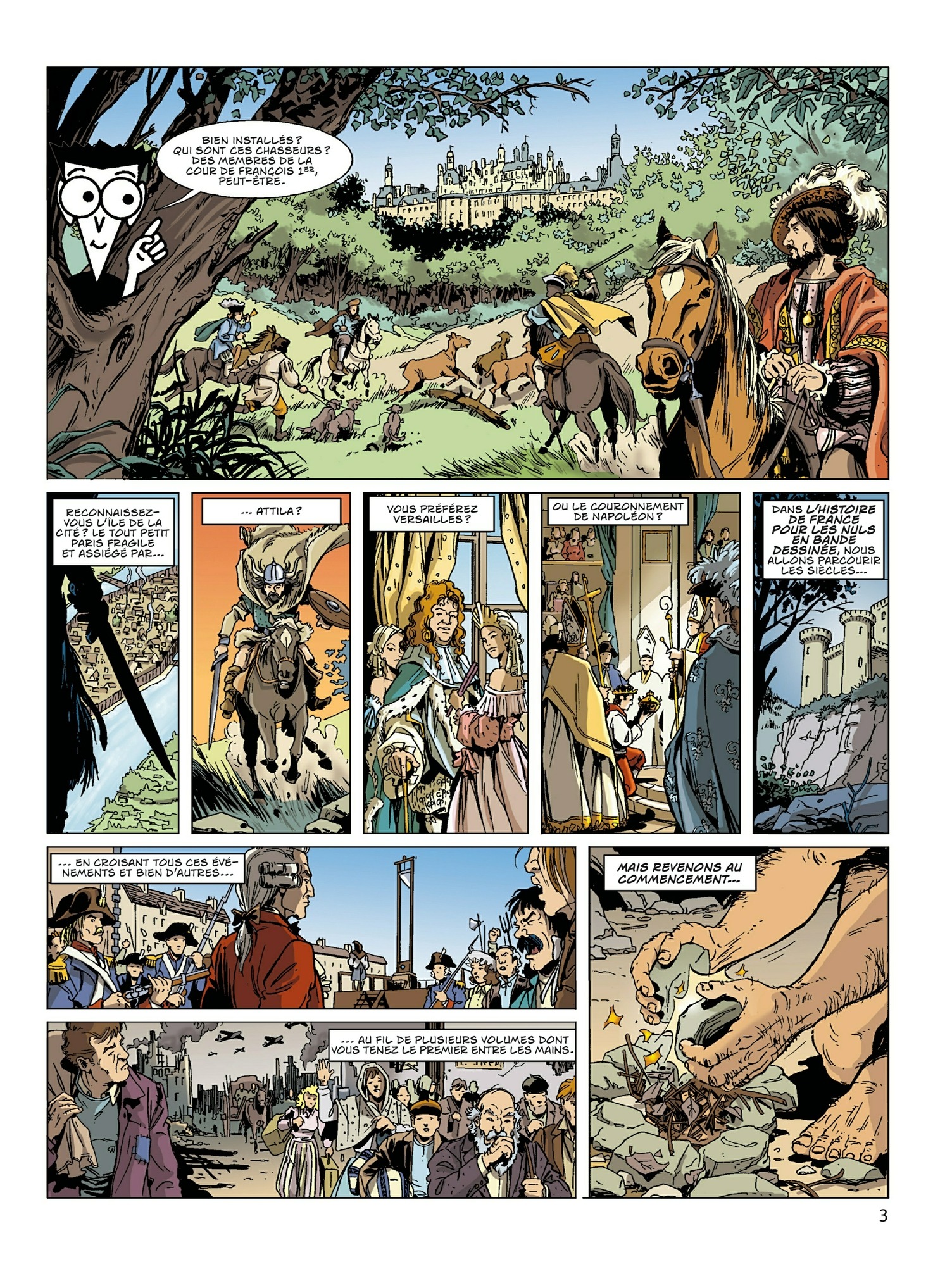 Vous avez rêvé de suivre en images, en planches et phylactères (en bulles, tout simplement), bref, en bande dessinée, la grande aventure de nos ancêtres lointains ou proches, tous ceux qui ont souffert, douté, aimé, guerroyé, régné, tous ceux qui ont vécu, tous ceux qui sont morts pour que naisse et vive la France ouverte au monde. Eh bien, cette bande dessinée, la voici ! Quelle émotion : vous avez rendez-vous, dans cet album, avec nos plus lointains ancêtres, puis avec la saga des Gaulois, et enfin avec celle de Clovis, notre héroïque ancien Franc !