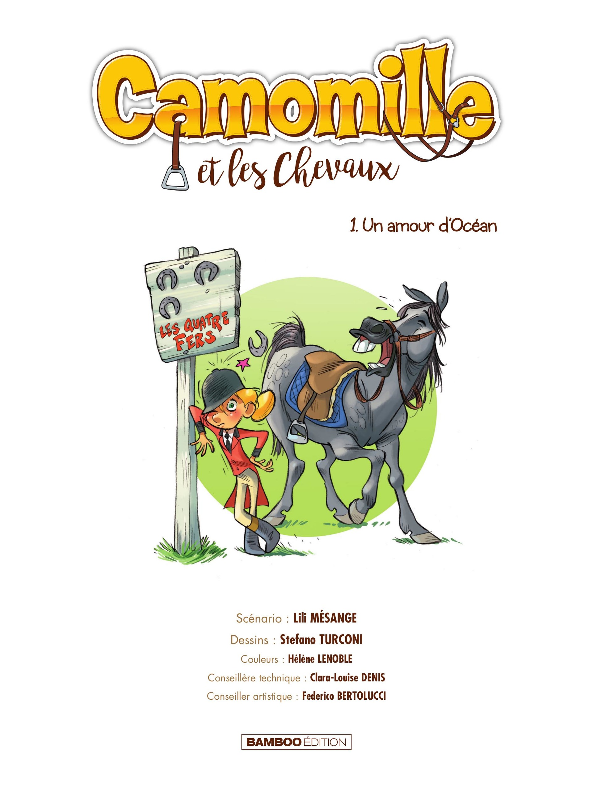 Je m'appelle Camomille. J'ai dix ans tout rond... Ma passion, c'est les chevaux, comme vous pouvez vous en douter. Mais croyez-moi, ça n'a pas toujours été le cas. Avant, quand j'étais petite, en passant devant le centre équestre des Quatre Fers, je ne les trouvais pas vraiment beaux. Il m'arrivait même de me pincer le nez... Et puis un jour, j'ai fait la connaissance d'Océan, un superbe cheval. Il est devenu mon meilleur ami et avec lui, je ne galope pas, je vole...