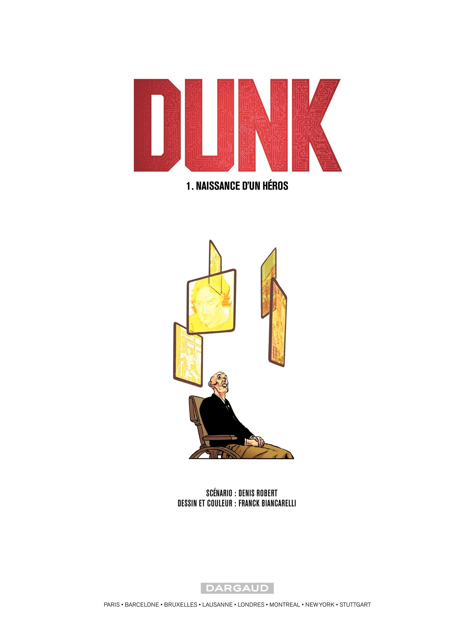Le premier épisode de Dunk se déroule en 2029. Un basketteur virtuose, pivot de son équipe, est agressé sur un parking après un match de légende. Commence alors un incroyable road-movie d'anticipation mêlant politique et neurosciences – Denis Robert mettant à profit ses recherches récentes sur le fonctionnement du cerveau.
