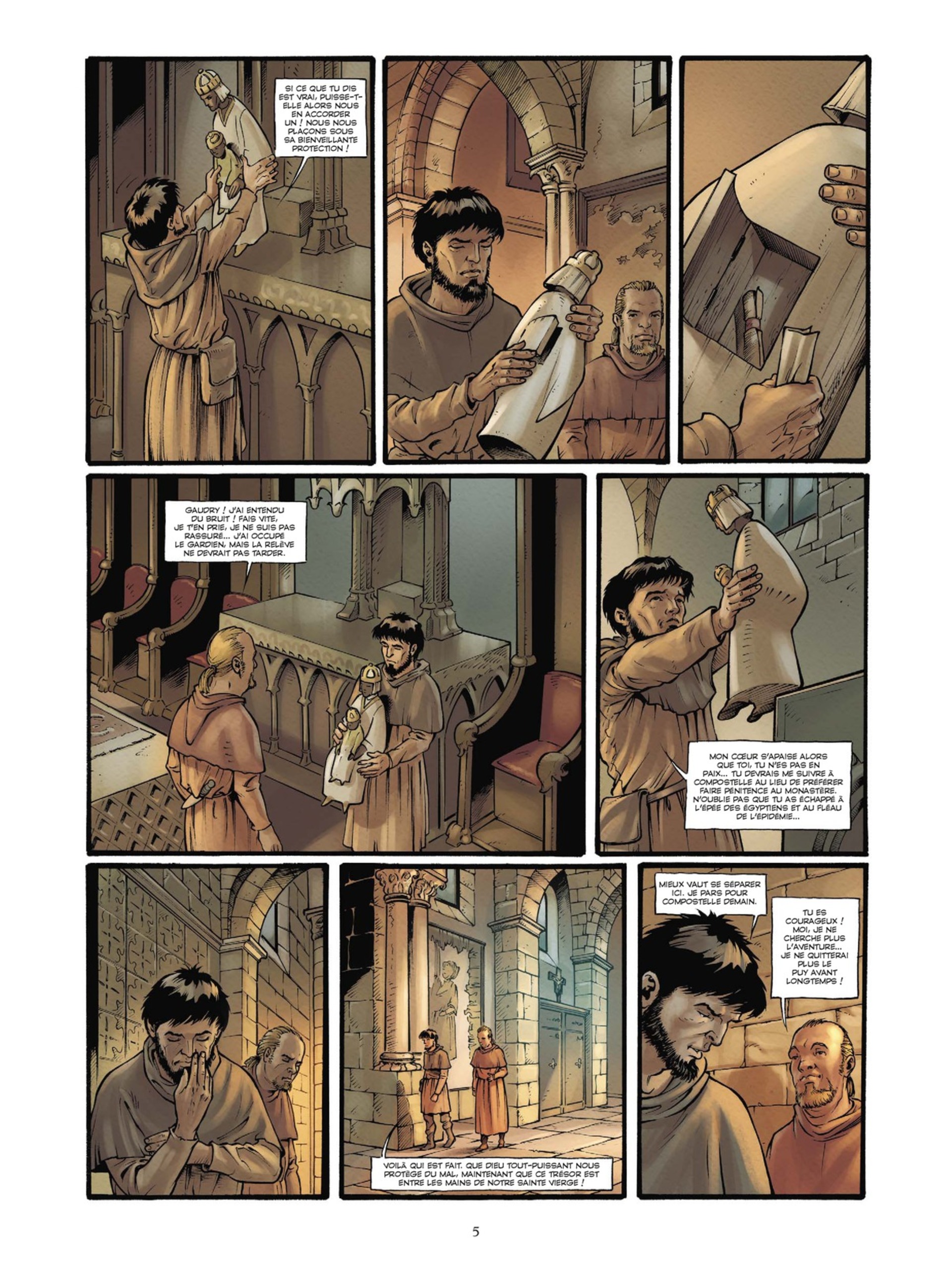 Cette série propose de parcourir des parties du chemin de Compostelle en alliant découverte des lieux tels qu’ils étaient au moyen âge et intrigue policière. Dans celui-ci la trame de fond est le vol de reliques qui ont à cette époque une grande importance pour la célébrité et donc la richesse des lieux de pèlerinage qui les détiennent. Plus simple et mieux construit que le tome 1, le scénario d...