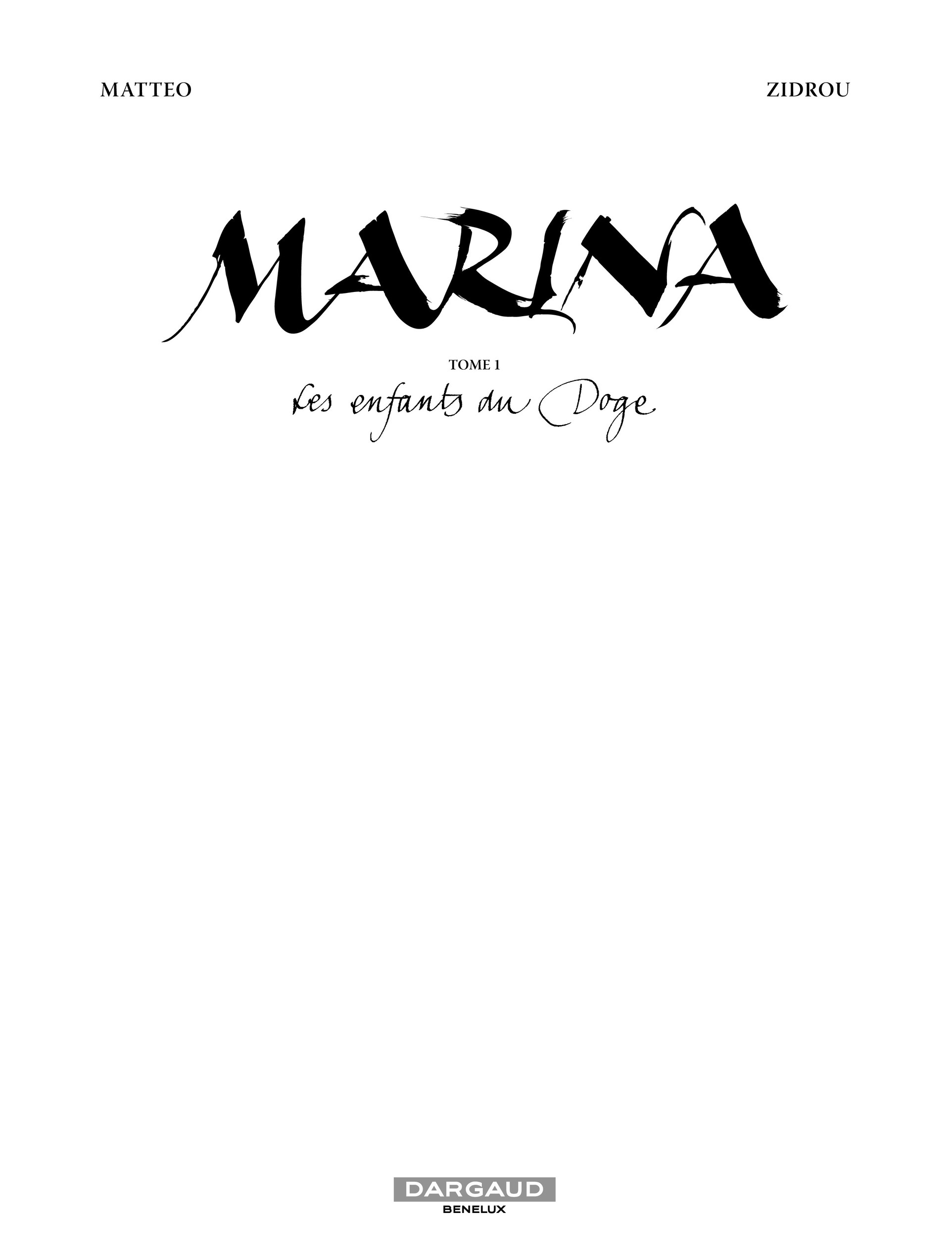 Pour leur première série historique intitulée Marina, Zidrou et Matteo embarquent le lecteur pour Venise. La Cité des Doges verrait-elle les prédictions de Dante Alighieri se réaliser à deux moments de son histoire, au XIVe siècle et de nos jours ? En 1342, après avoir exilé pendant de nombreuses années sa propre fille, Marina, le Doge choisira de la sacrifier au nom de la Cité... Mais au XXIe siècle, qui empêchera le professeur Boccanegra de réveiller Marina, sirène maléfique peinte sur une épave ?