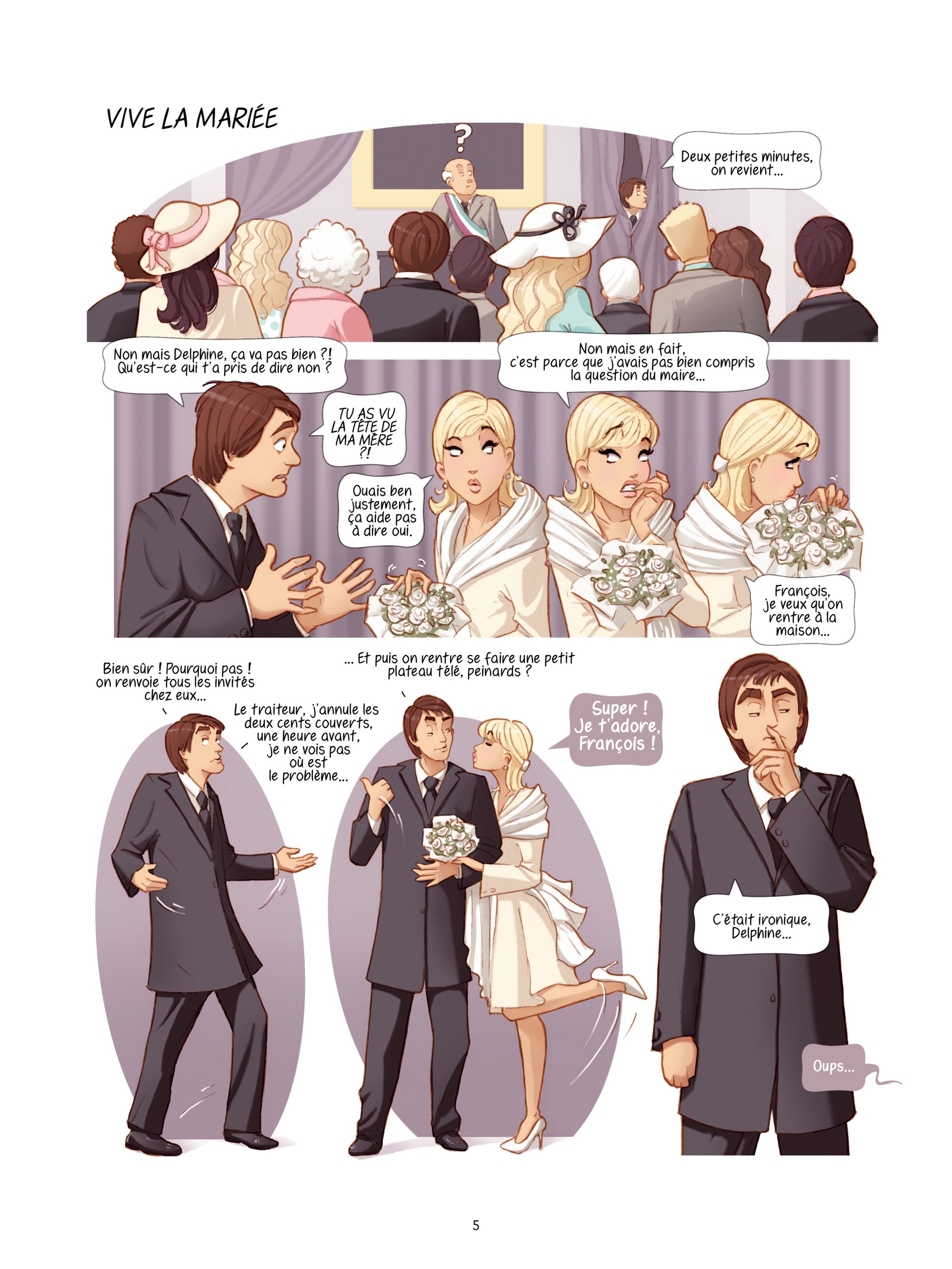 Reprenant les meilleurs sketchs du spectacle, la BD interprète dans un style graphique féminin et moderne, tous les moments les plus drôles de la vie d’Isabelle et Martin. Chaque scénette est alors transposée en gag de plusieurs planches donnant parfois lieu à des situations incongrues comme une conversation téléphoniques entre nos deux amoureux alors qu’ils sont en train de batifoler avec leurs amants respectifs ou encore la classique dispute lorsque Isabelle prend le volant et que Martin ne cesse de critiquer sa conduite...