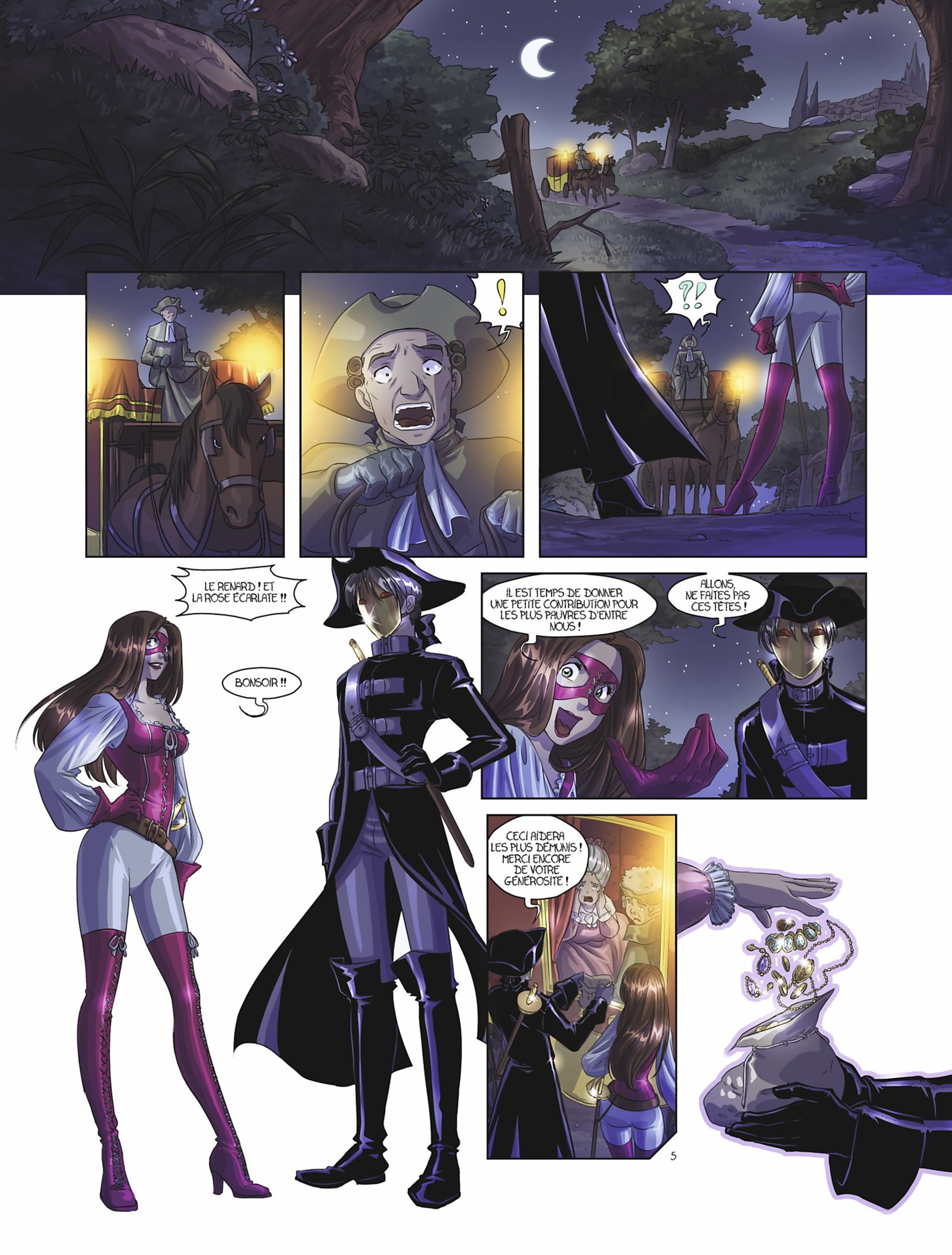 Depuis peu fiancée à Guilhem, Maud, alias la Rose écarlate, n'a rien perdu de sa fougue, ni de ses convictions, toujours prête à défendre les opprimés. Côté bonnes manières, en revanche, la belle a quelques efforts à faire. En proie à une terrible crise de jalousie depuis l'arrivée d'Adèle, la justicière devra pourtant garder son sang-froid afin de démasquer ce fantôme tueur de jeunes femmes rousses...