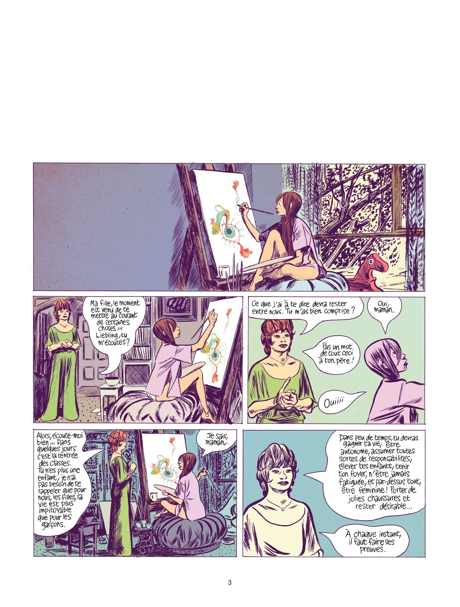 Récit dramatique, Lune l’envers nous décrit les affres de la « non création » d’un auteur de BD outrancier et profondément égoïste. Le dessin strie de lignes noires les personnages et les décors, les paysages pluvieux, et procure un sentiment de spleen que n’ôte pas la couleur. Dans un entrelacs temporel où futur et présent se rencontrent, homme et femmes sont devenus objets inconscients du trav...
