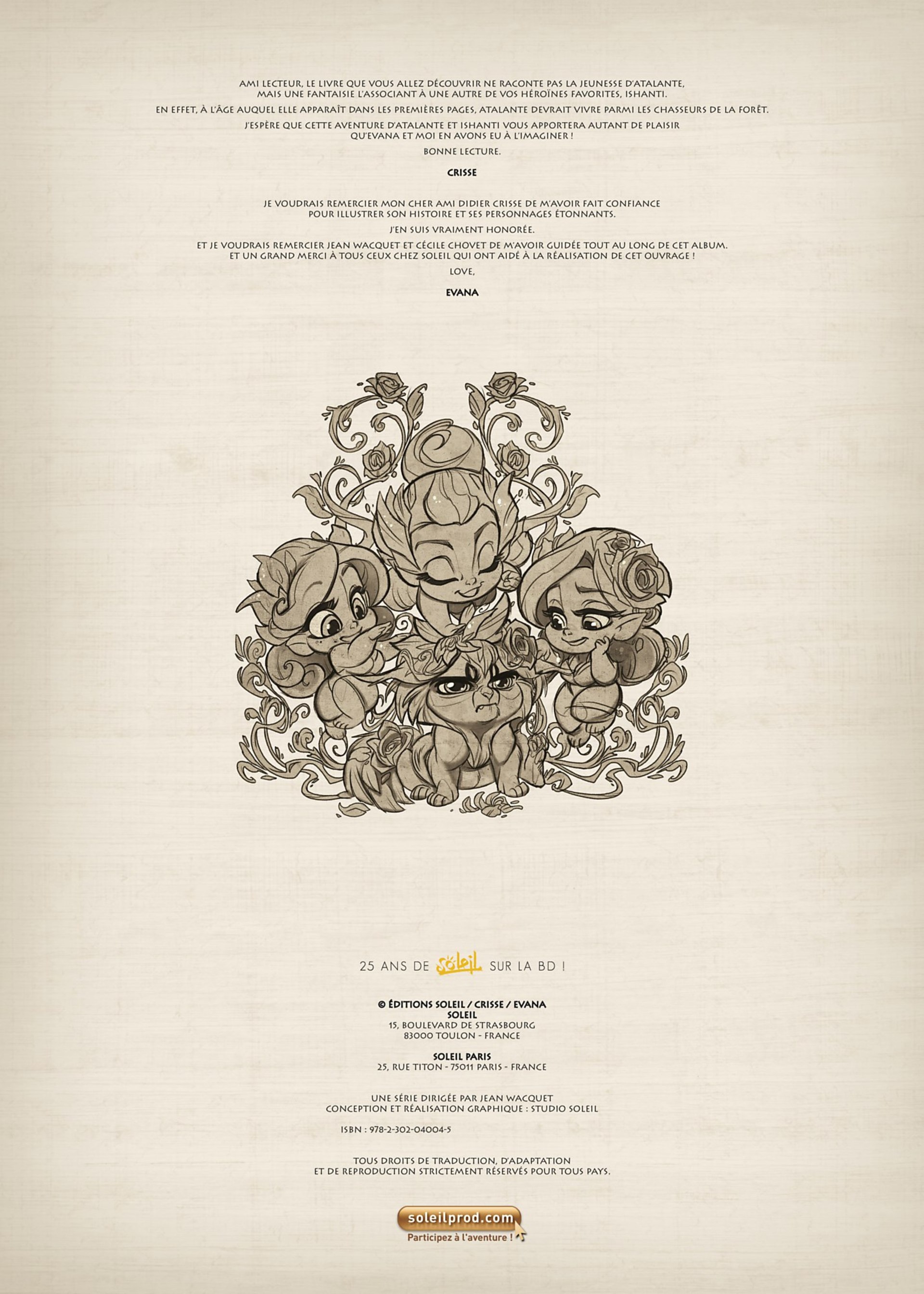Cette aventure paLpitante réunit deux des personnages majeurs de Crisse. Sur un scénario riche en émotions de leur créateur, la dessinatrice Evana Kisa signe là un premier album haut en couleurs !