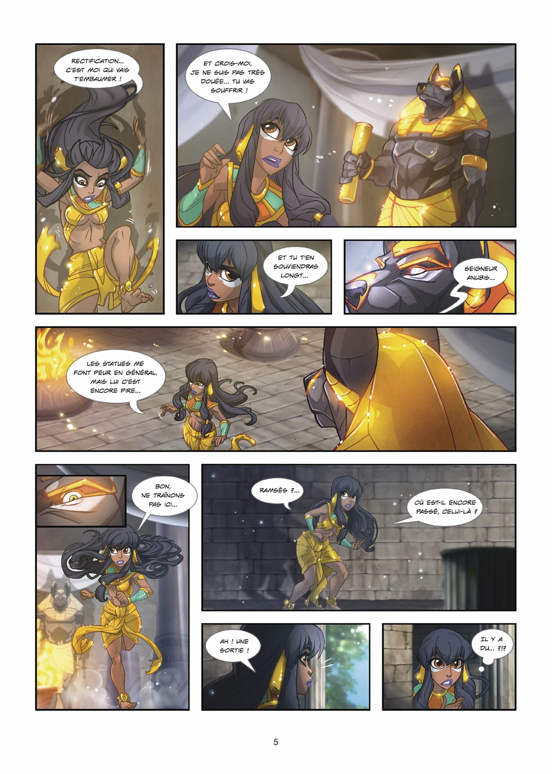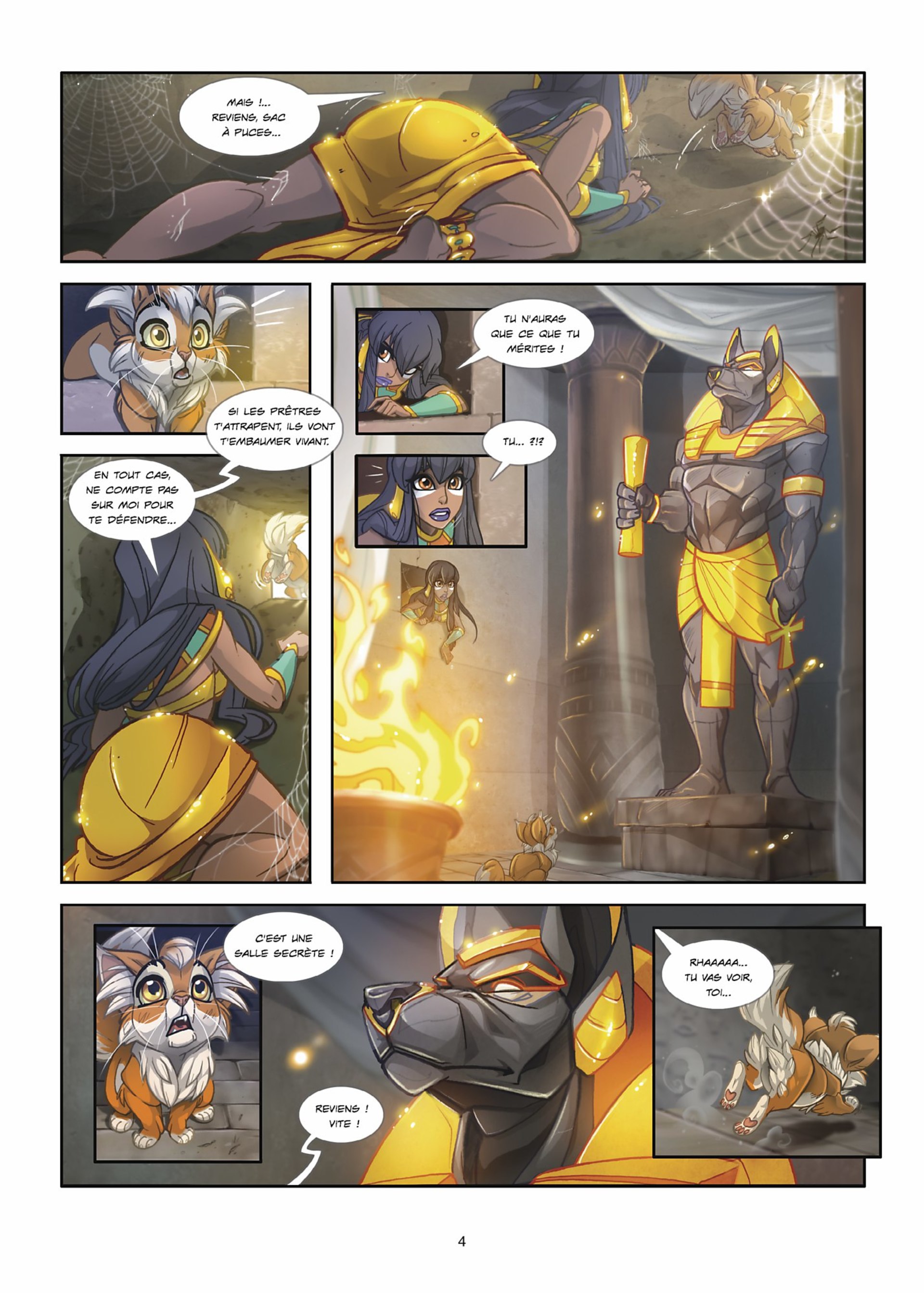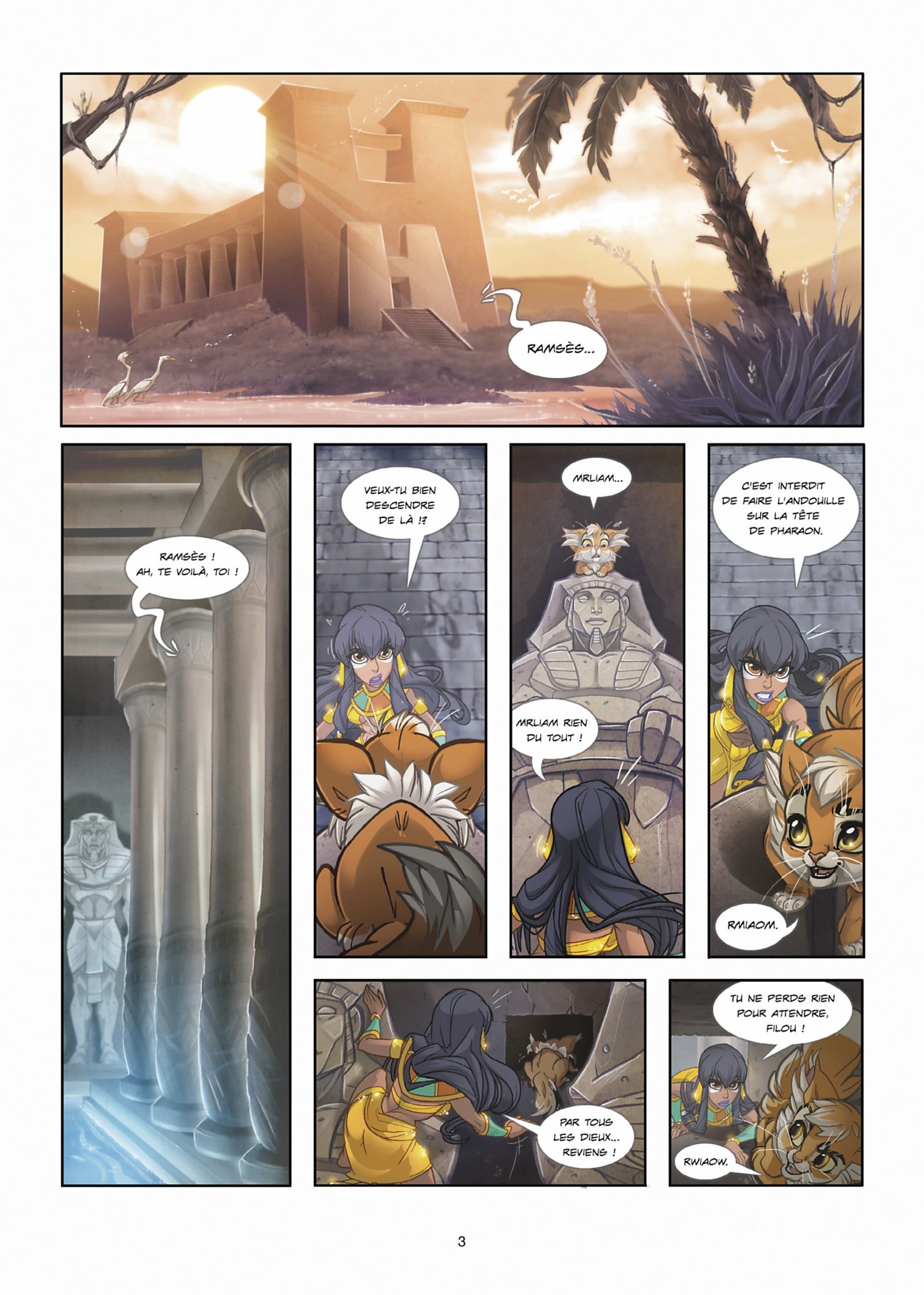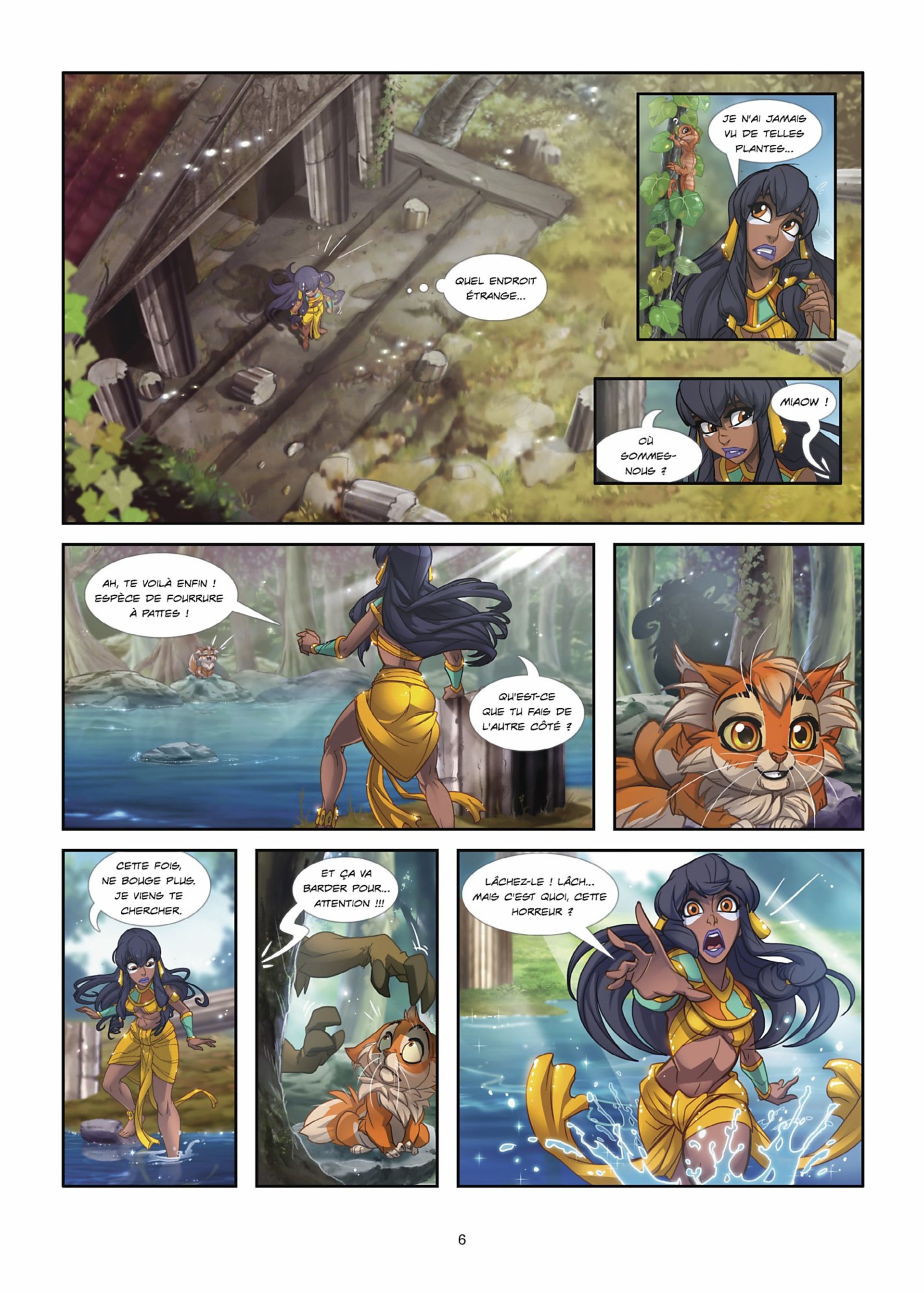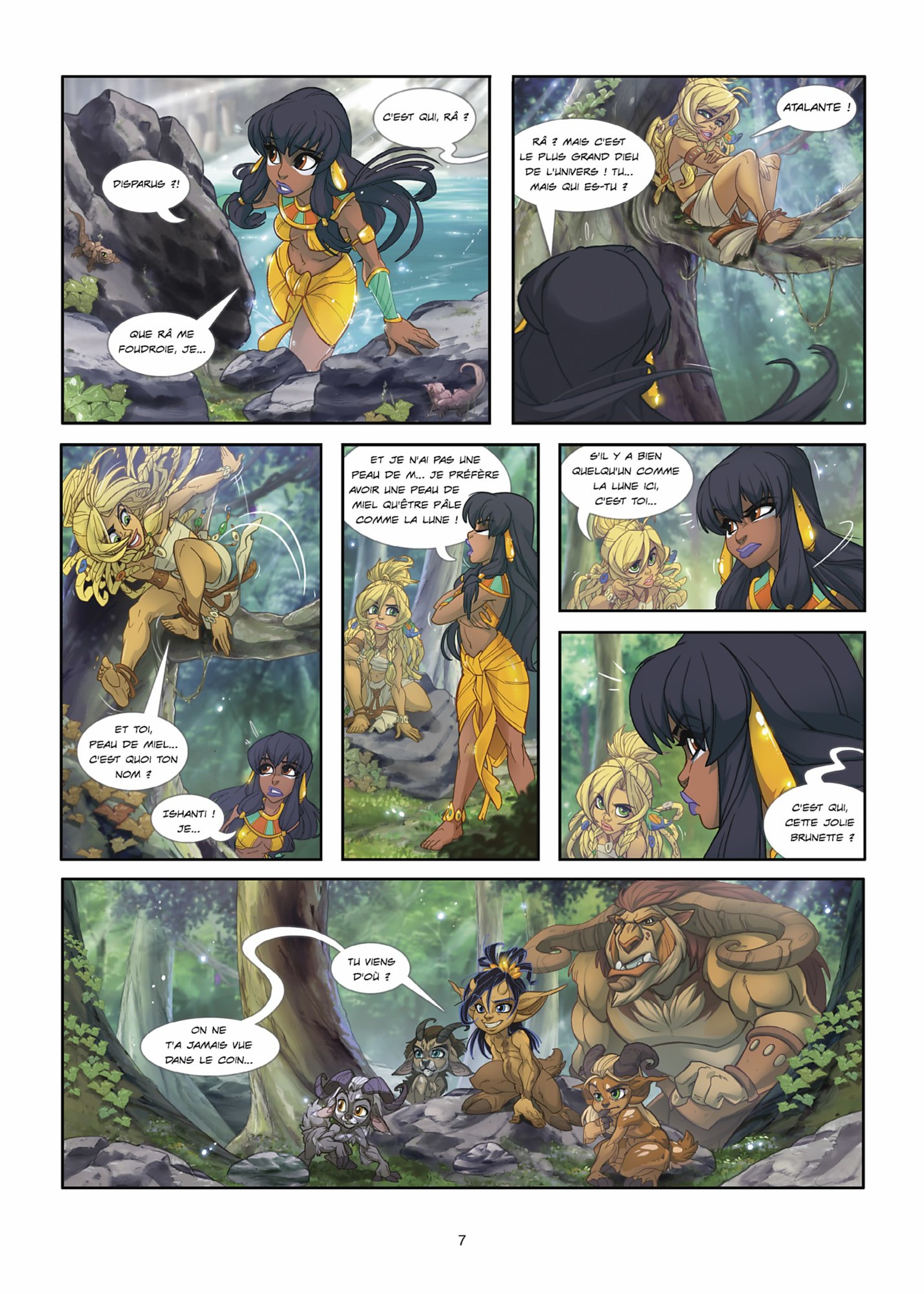 Ramsès, le chaton roux d’Ishanti, est bien turbulent : il échappe sans cesse à la vigilance de sa jeune maîtresse ! Un jour, il se faufile dans le temple sacré d’Anubis, ce qui est bien sûr interdit… Ishanti le poursuit afin de le sauver d’une correction bien méritée, mais le petit chat s’esquive par ce qui semble être une voie d’aération. Mais surprise ! Le tunnel débouche dans… la forêt du Pélion ! Le royaume des faunes et de la petite Atalante…
