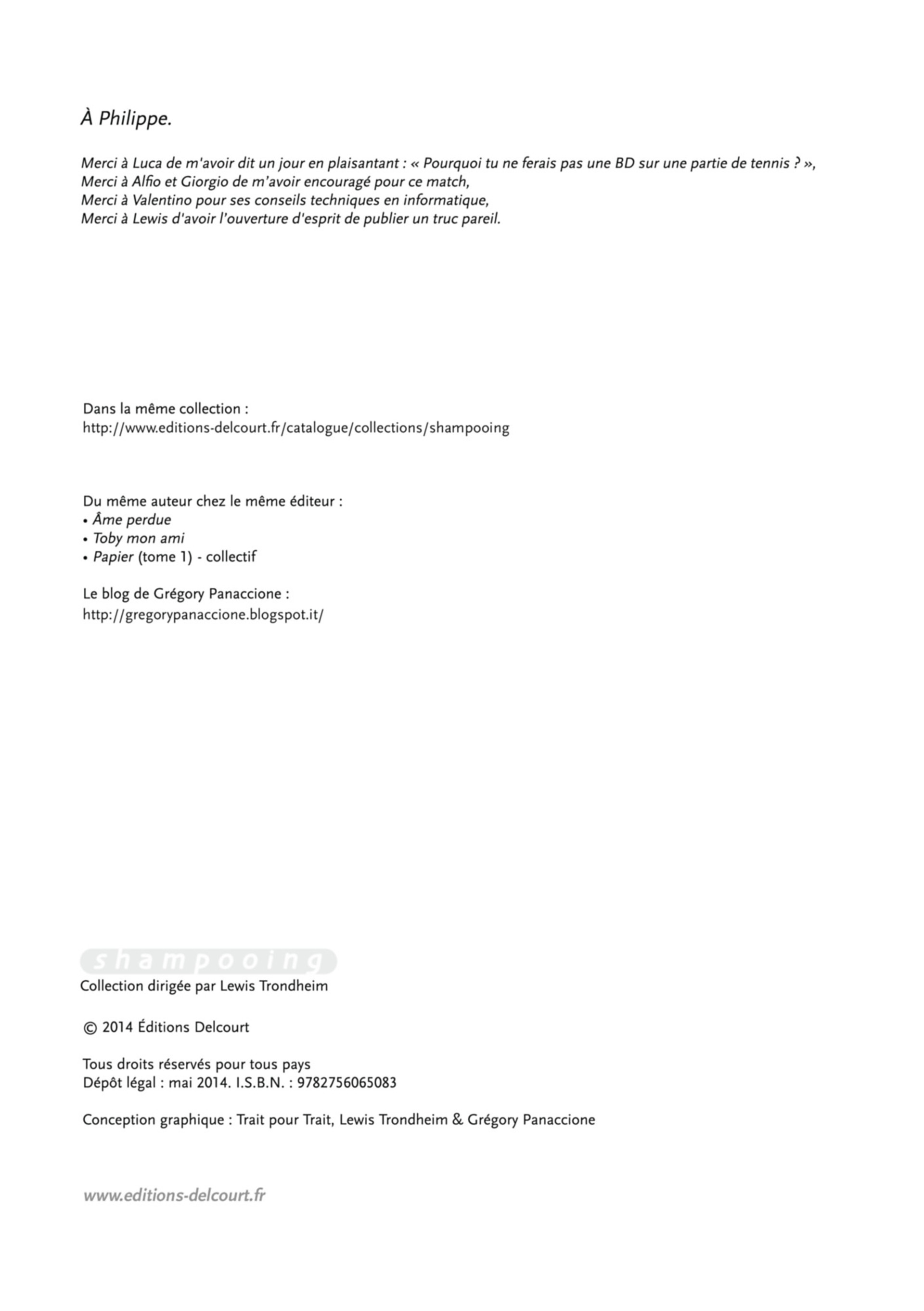 Ça commence avec le tirage au sort, ça se poursuit sur un service, ça finit avec un gagnant et un perdant. Ça s'étend sur des centaines de pages de doute, de tension, de joie, de peur, d'impuissance et de colère. Ça impressionne, ça angoisse, ça fait rire et ça étonne. C'est du sport à l'état brut, c'est un ovni en BD. C'est un match de tennis dans son intégralité (point par point ! ) raconté par Grégory Panaccione !