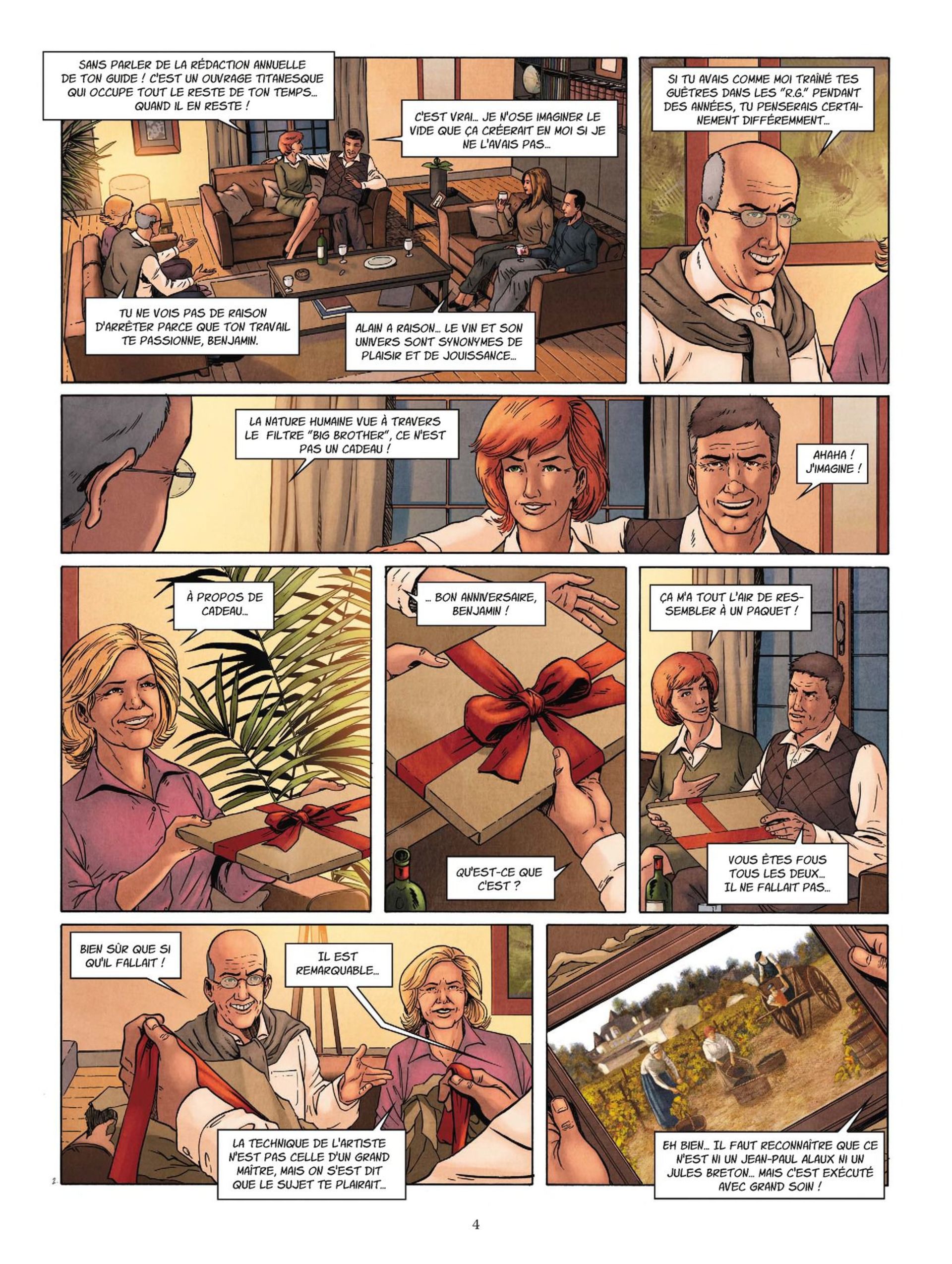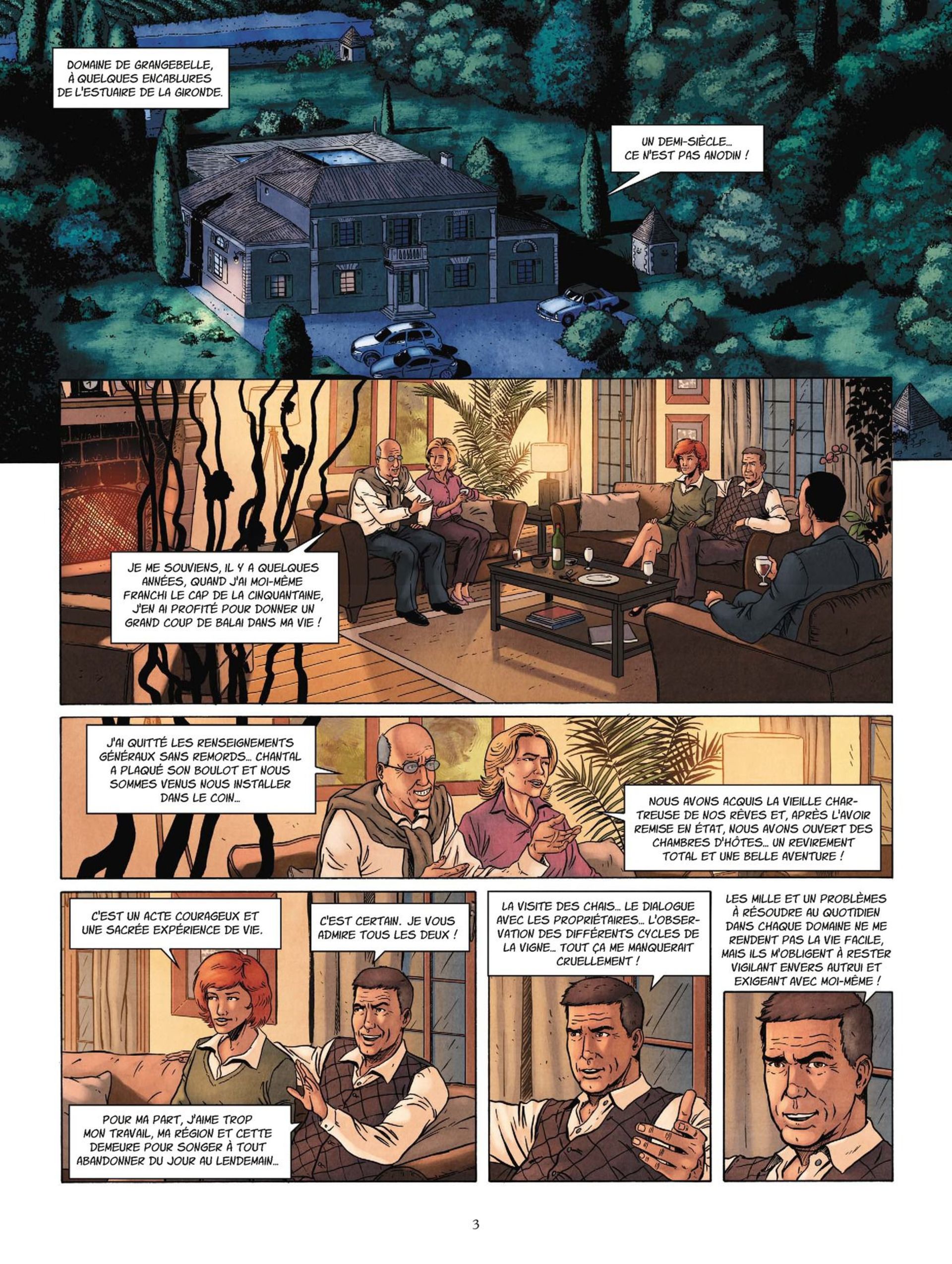 Je connaissais simplement l’adaptation télévisée des romans de Jean-Pierre ALAUX et Noël BALEN ; J’apprécie les acteurs mais aussi l’univers du vin, de ses artisans, ses travers et ses beautés que les scénarios proposent. Corbeyran et Sandro sont su mettre en image cet univers, en s’attachant aux hommes et au terroir, tout ce qui fait la beauté et le mystère du vin. Il faut aussi beaucoup de tén...