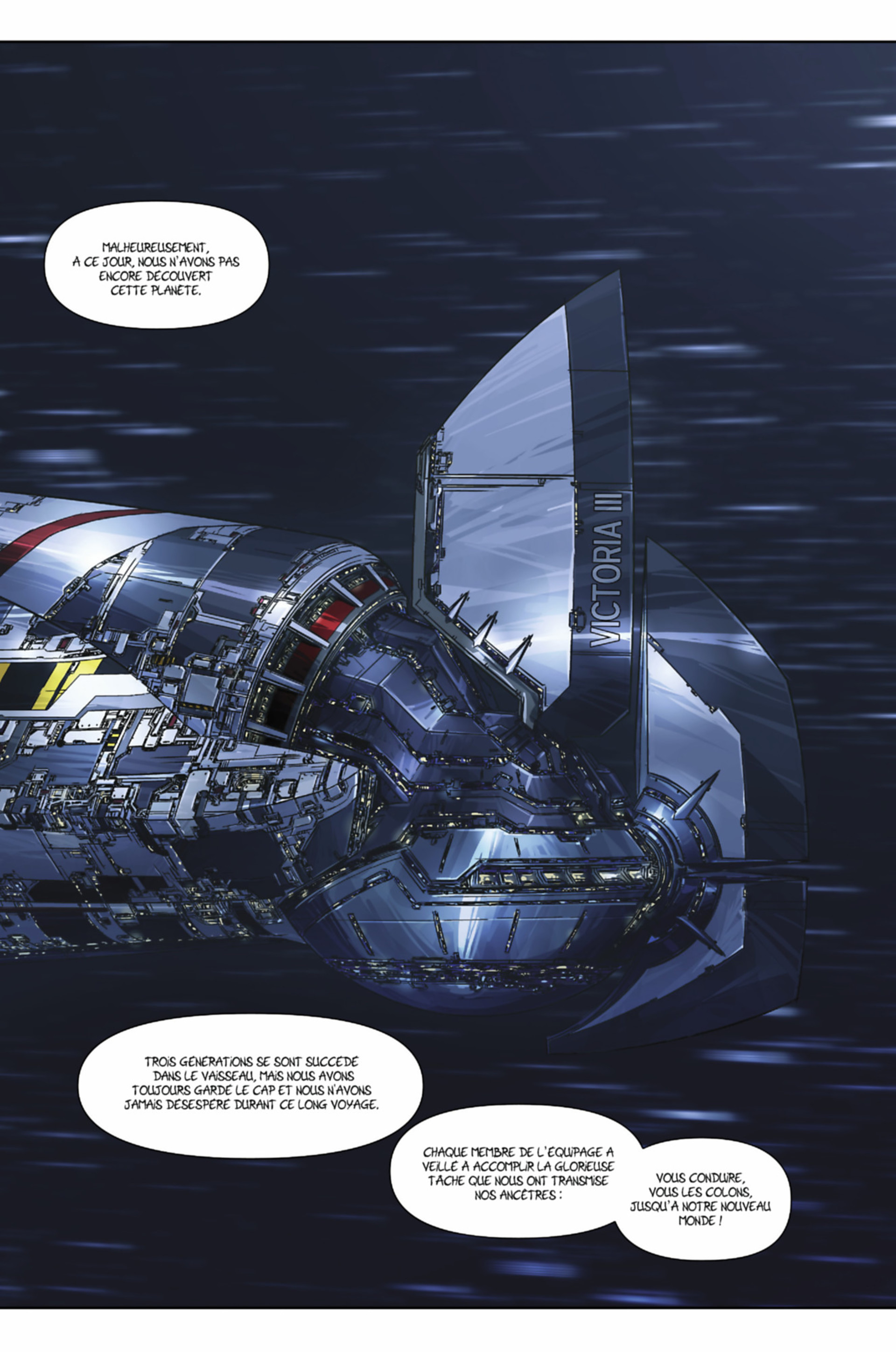 Il y a 250 ans, un million d'hommes et de femmes quittaient la Terre pour partir à la recherche d'une nouvelle planète habitable. Trois générations de vie commune dans un vaisseaumonde, cocon inaltérable aux frontières bien dessinées, reconstitution parfaite d'un monde passé, à jamais révolu. Mais comment réagir quand on se retrouve brusquement confronté à l'altérité ?