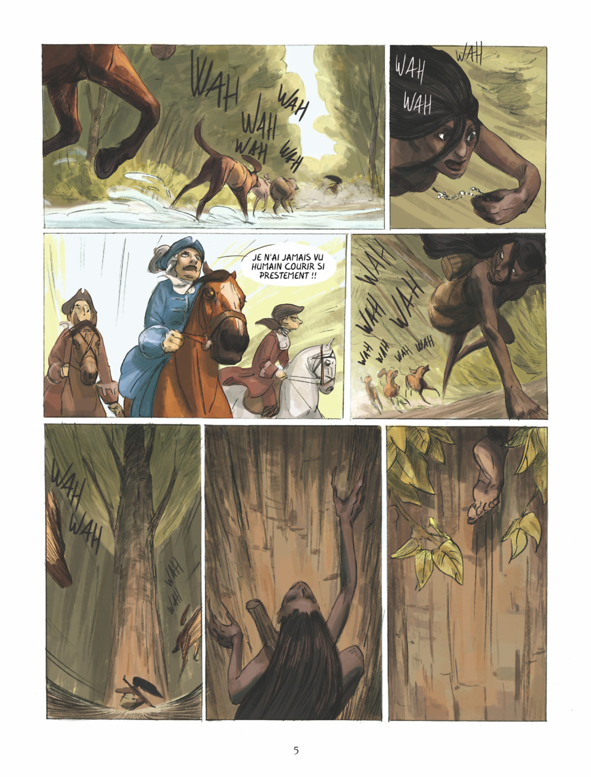 1720. Âgée de huit ans, une petite fille, partie du Canada, fuit l'esclavage. Arrivée à Marseille, après avoir subi viols et brimades, elle se réfugie dans les forêts de Champagne. Ainsi débute dix années d'errance jusqu'à sa capture et sa progressive réhabilitation. Mêlant nature et culture, bestialité et aristocratie, violences et douceurs, cet album de contrastes raconte l'histoire extraordinaire de Marie- Angélique, l'enfant sauvage.