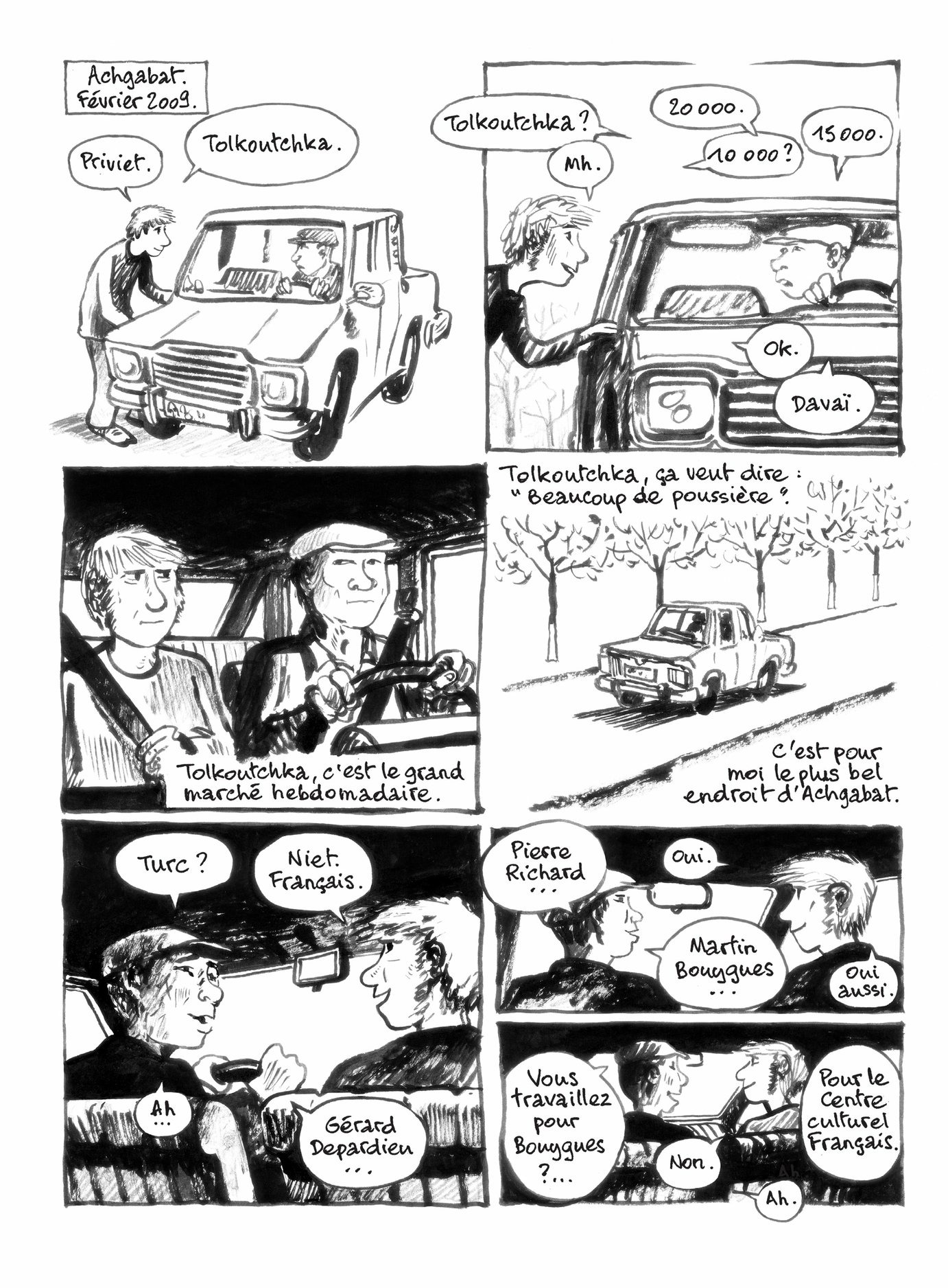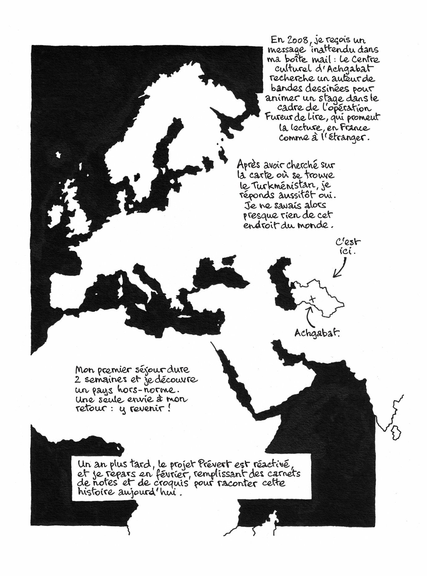 Lorsque Troubs arrive à Achgabat, la première question que lui posent les Turkmènes en découvrant sa nationalité est : « travaillez-vous pour Bouygues ? » Alors que la culture nationale semble se résumer à Gérard Depardieu et Pierre Richard, Troubs est l'invité du Centre culturel français pour superviser un recueil de poèmes de Jacques Prévert illustré par des artistes locaux. Un événement pour ce pays où quasiment l'unique livre du pays, avec le Coran, est Rhunama, écrit par l'ancien président.