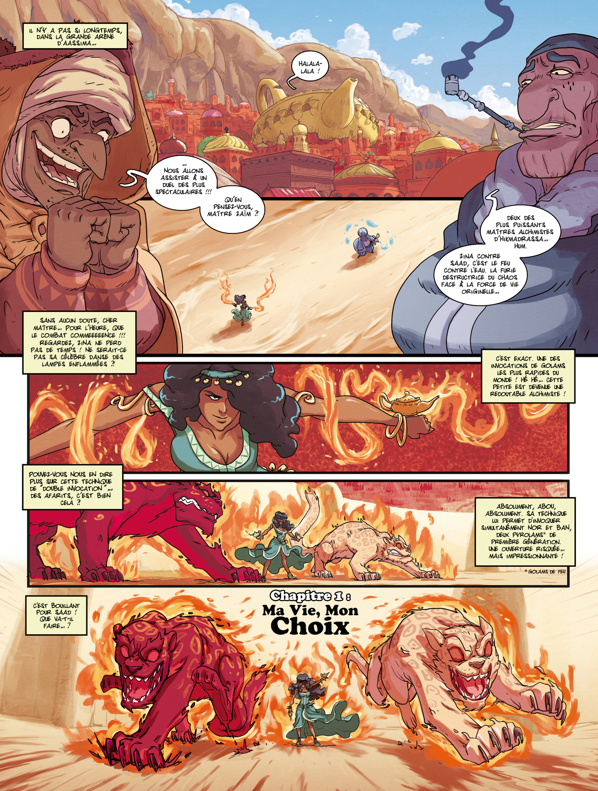 Petit voleur des rues du califat d'Abu, Mehdi est contraint de se présenter bien malgré lui à l'examen d'entrée d'Hikmadrassa, la plus célèbre école d'alchimie du continent. Et s'il n'y connaît rien en enchantements, sortilèges et autres invocations de golams, il va néanmoins se découvrir un pouvoir quasi unique ! En poussant la porte du monde des Golams, Mehdi ne va pas seulement rencontrer ses premiers véritables amis ; il va comprendre ses origines, et partir à la conquête de son futur ! Même s'il lui faut écrire une nouvelle page de l'histoire du Abu !