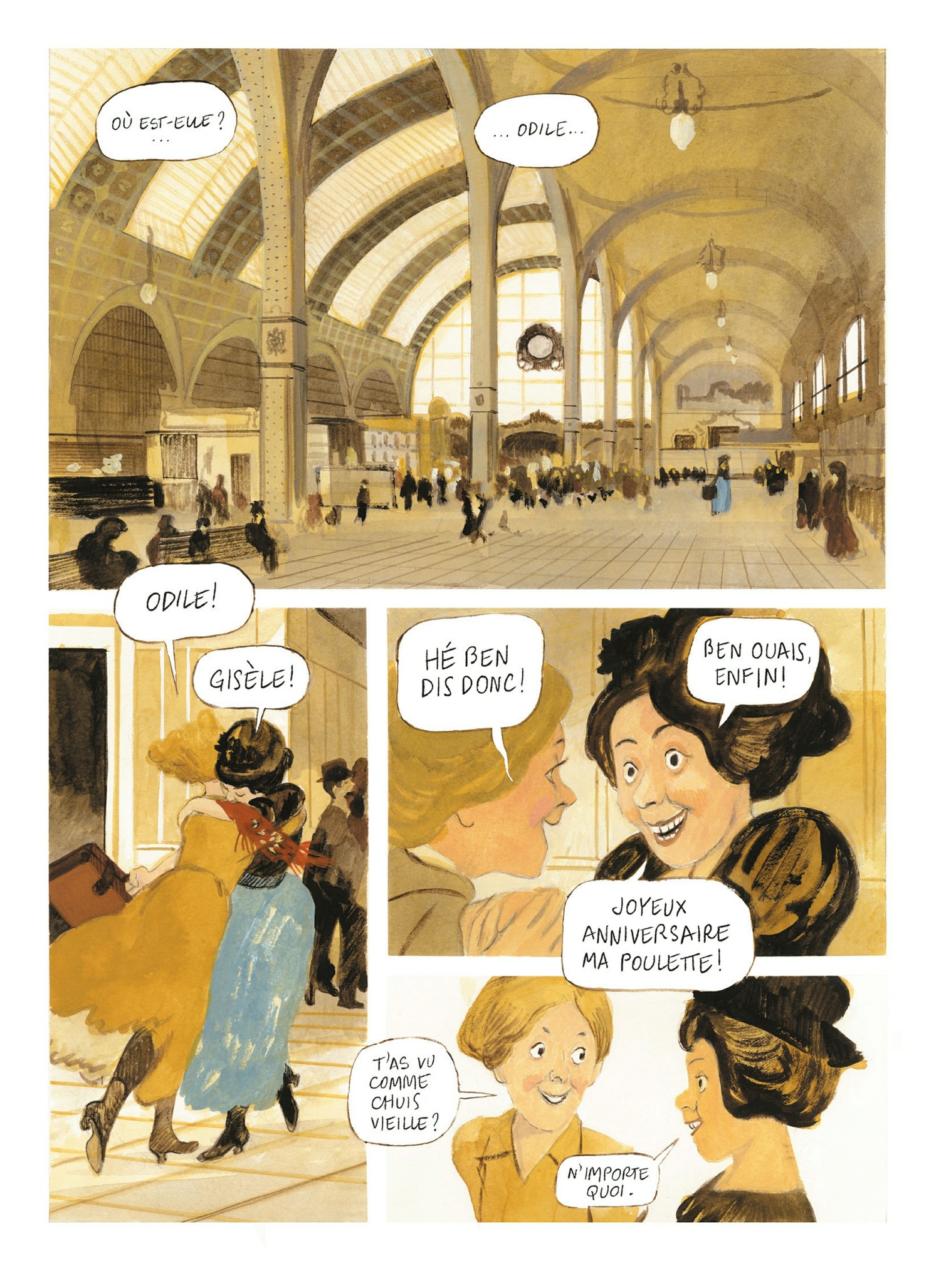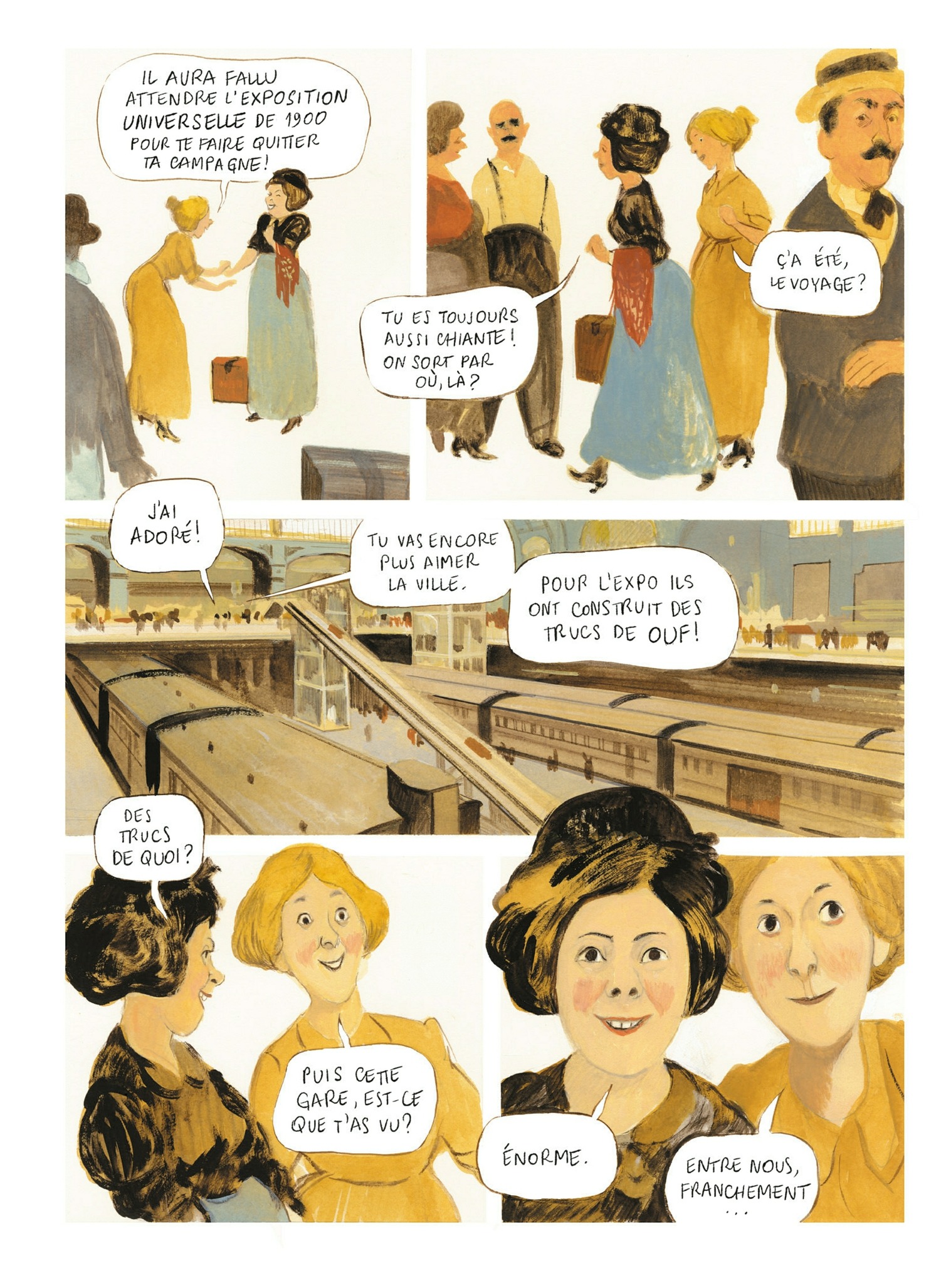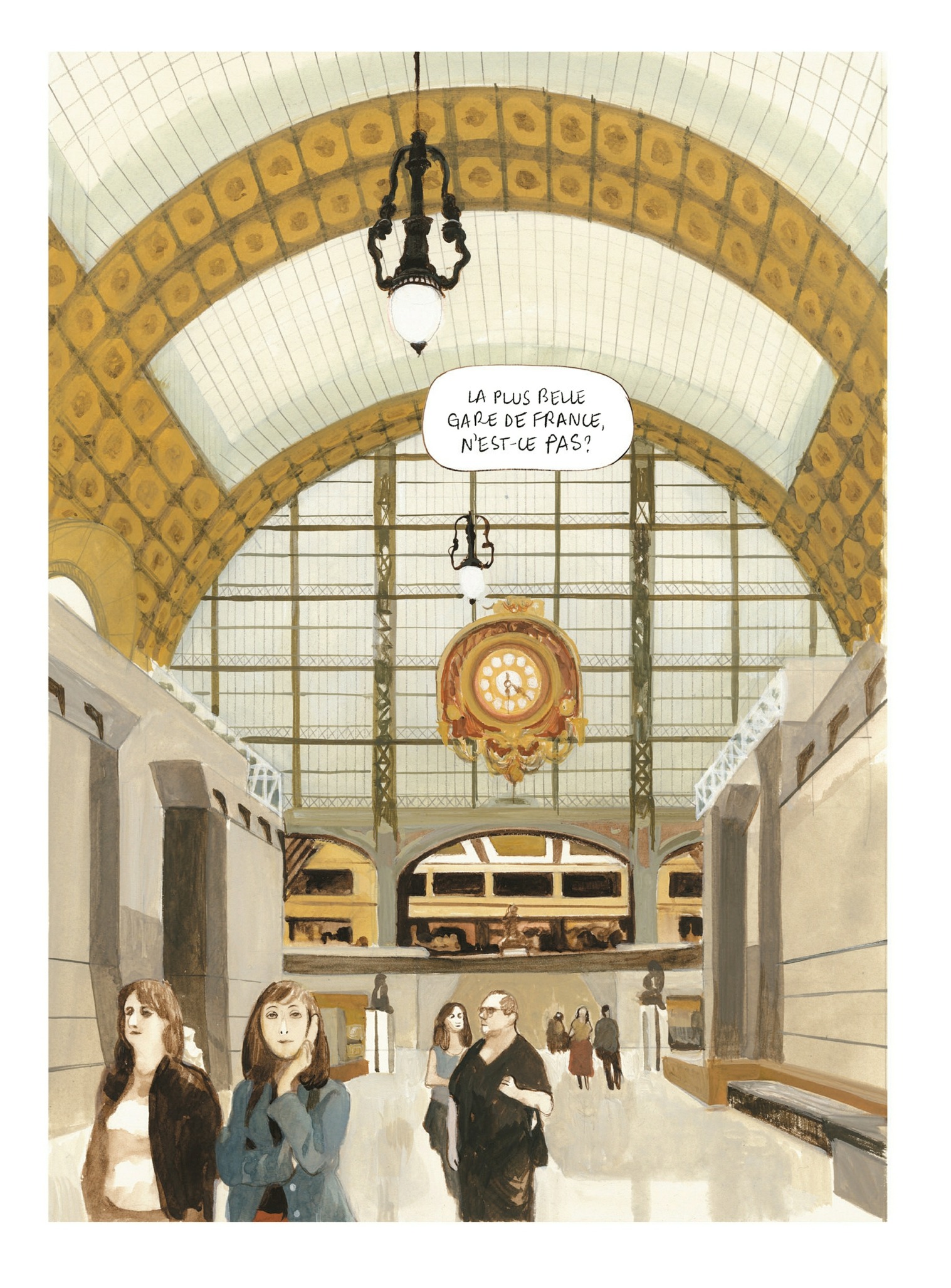 À l’occasion de l’Exposition universelle de 1900, de nouveaux bâtiments furent construits à Paris, qu’ils soient amenés à rester comme la gare d’Orsay, ou à être détruits comme la tour Eiffel. Plus d’un siècle plus tard, on sait ce qu’il est advenu de ces monuments et la gare d’Orsay est devenue l’un des plus beaux musées du monde, accueillant les chefs-d’oeuvre impressionnistes. Il transforme ainsi la gardienne du musée en charmeuse de serpent du douanier Rousseau ! Il suit à la trace le jeune Edgar Degas pour son premier rendez-vous chez Ingres, ou Monet imaginant qu’il va peindre la gare St Lazare. Si Manuele Fior reproduit le plus fidèlement possible les tableaux cités, respectant les styles des artistes, il bouscule les conventions et les époques pour faire revivre toutes ces oeuvres, chefs-d’oeuvre universels ou tableaux méconnus, s’attardant sur des détails pour mieux nous en faire ressortir la beauté ! Un hymne à la beauté et à la création, porté de mains de maitre par l’un des meilleurs dessinateurs de sa génération.
